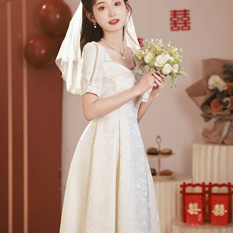 白色礼服裙女订婚连衣裙日常可穿领证登记小白裙法式裙子小个子夏