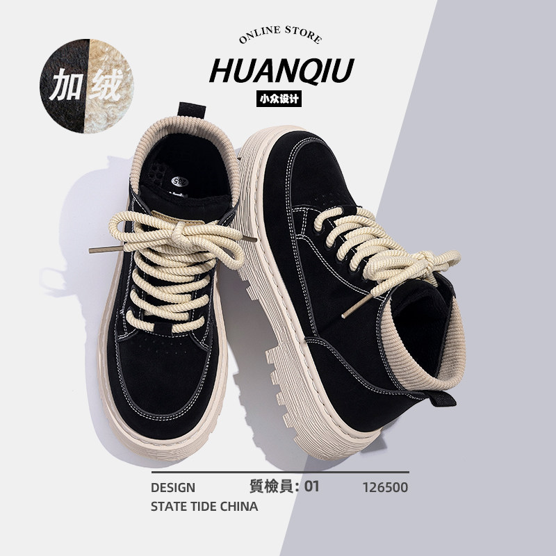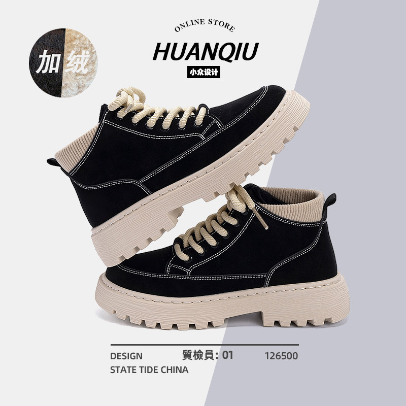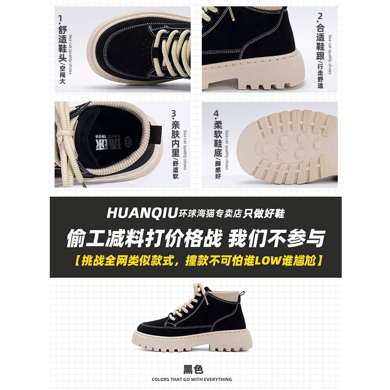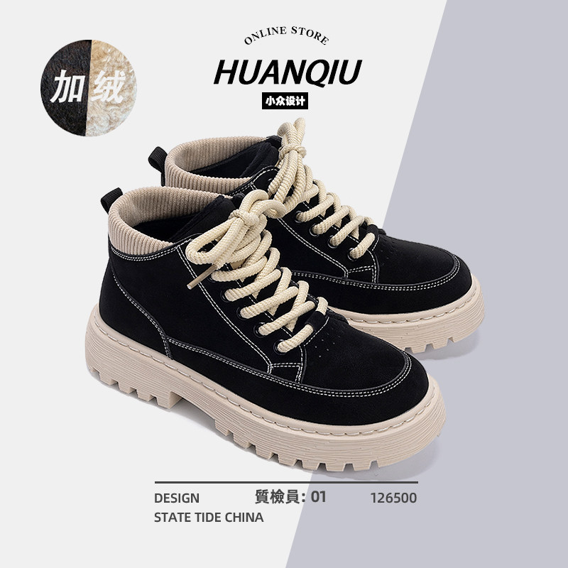 环球加绒马丁靴女款2025新款冬季保暖棉靴子百搭高帮休闲二棉鞋女