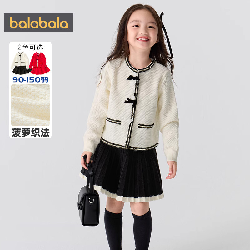 巴拉巴拉女童小香风套装宝宝公主红色拜年服秋冬儿童新款童装裙子