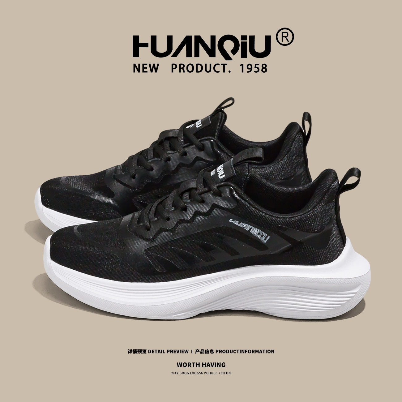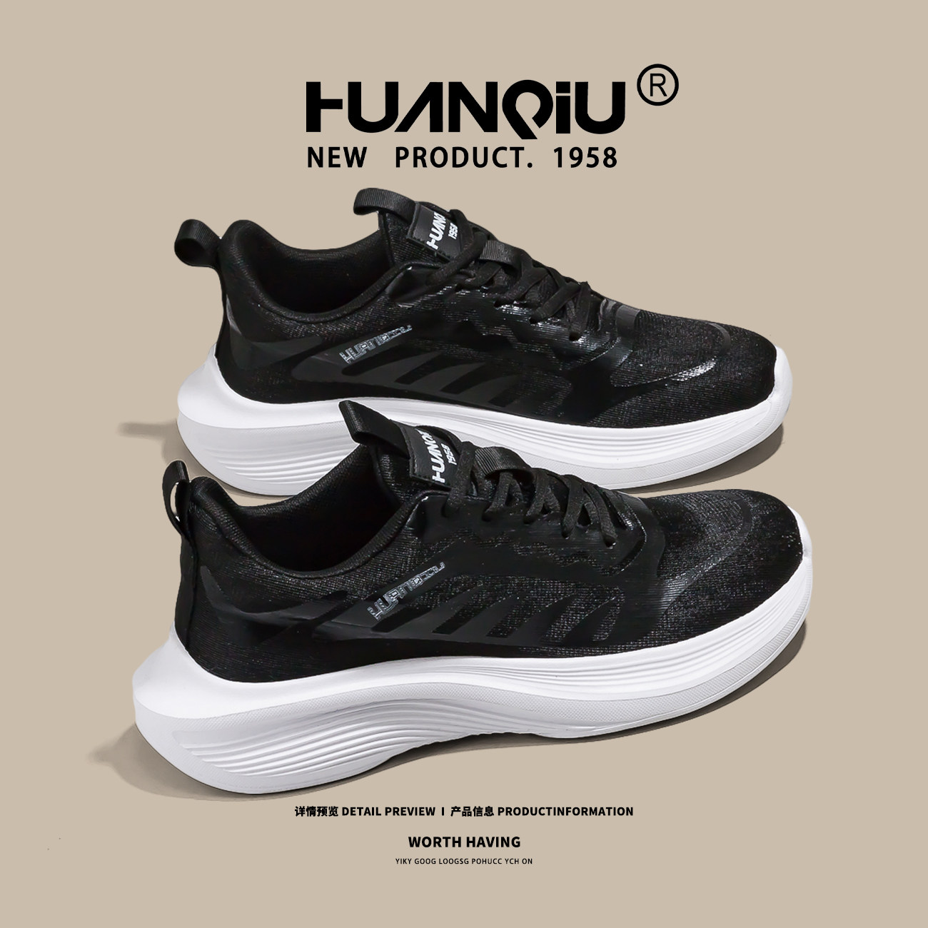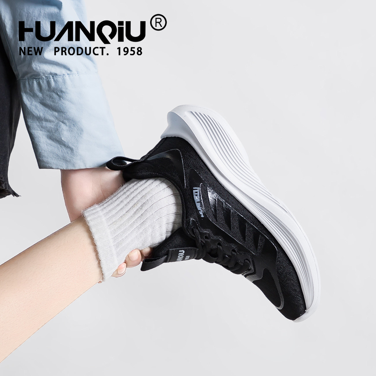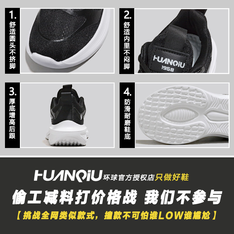 环球黑色飞织鞋女款2026新款春季百搭网面透气厚底轻便休闲运动鞋