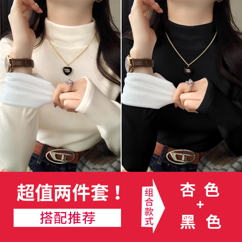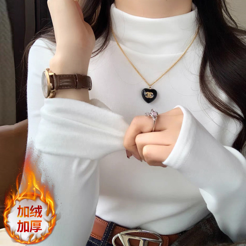 加绒加厚保暖半高领打底衫女秋冬高级感黑色内搭上衣新款可外穿