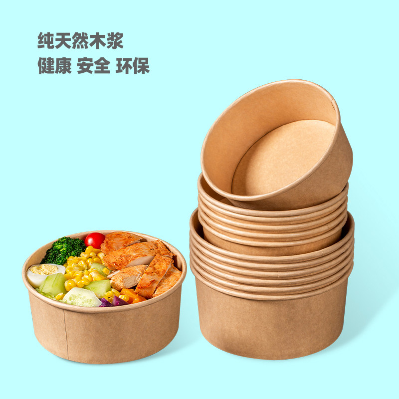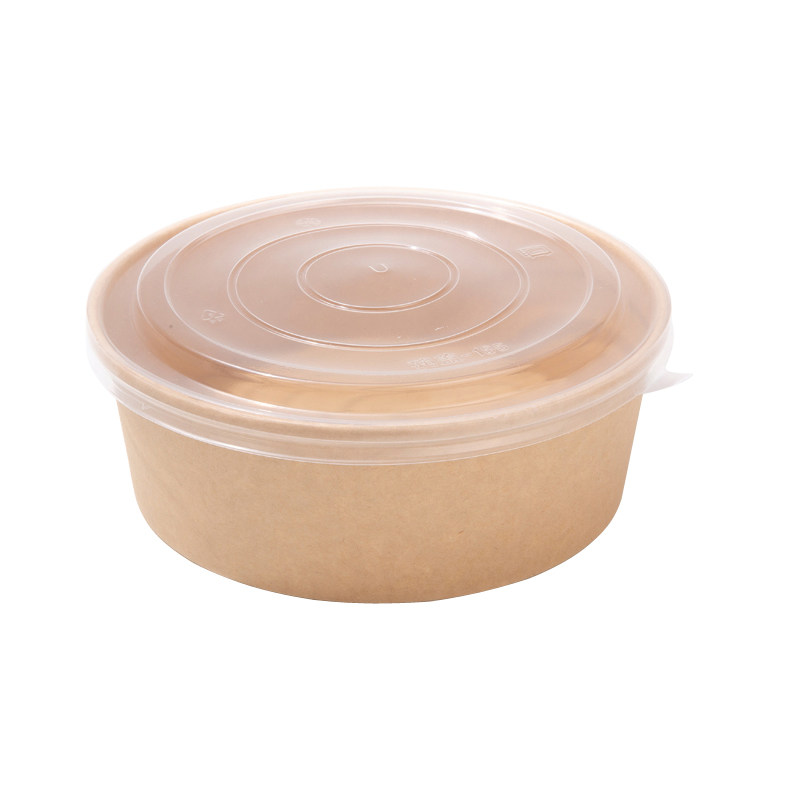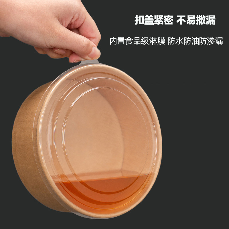 750-1100牛皮纸碗打包盒食品级耐高温圆形带盖外卖商用一次性饭盒