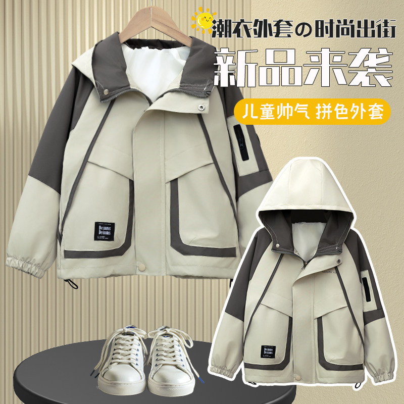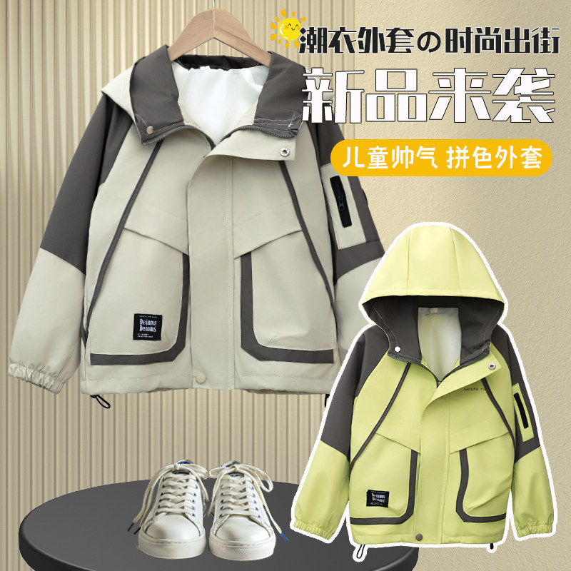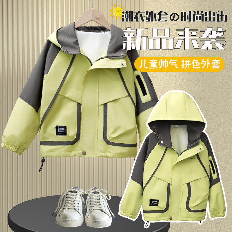 男童春装风衣外套2025新款中大童春秋男孩洋气春季儿童冲锋衣