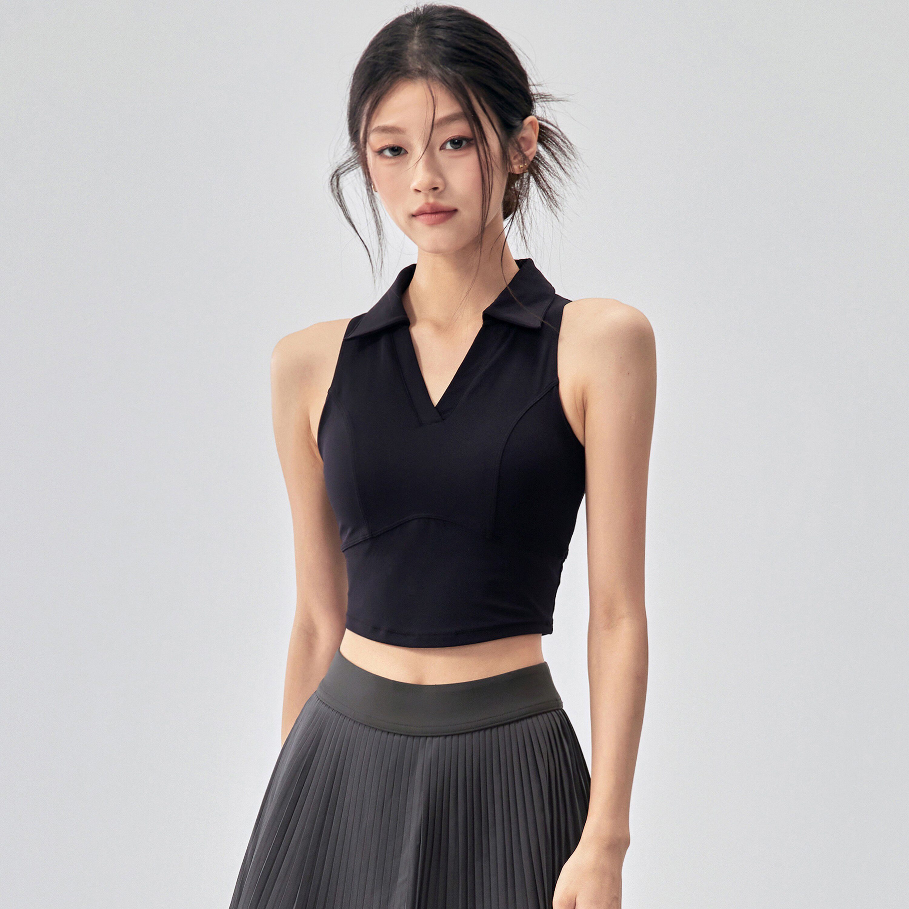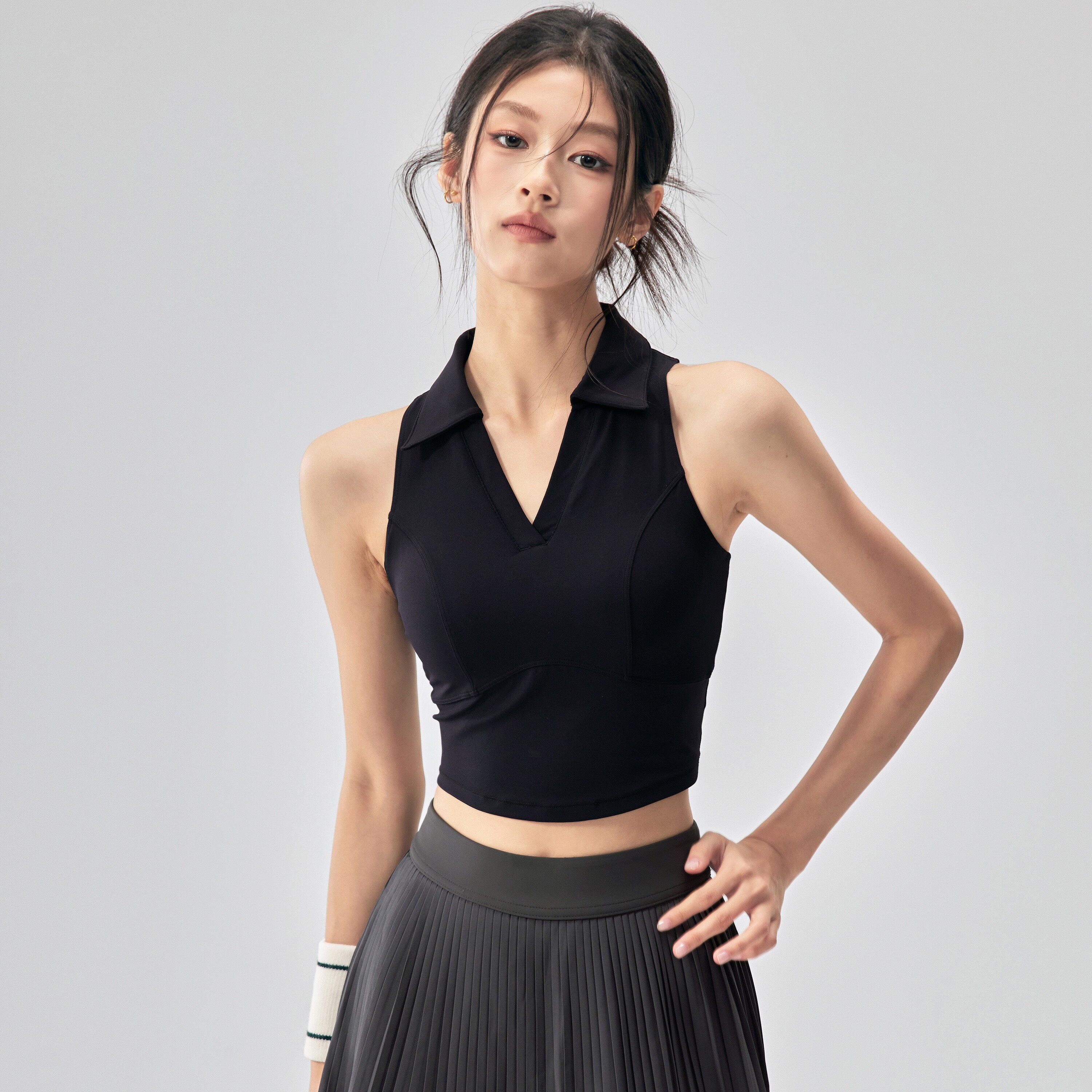 防震运动背心带胸垫瑜伽服上衣polo领网球训练速干健身内衣户外新