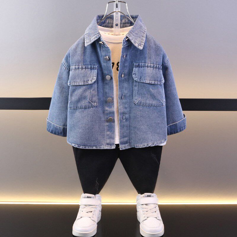男童牛仔衬衫外套春秋2024新款小童薄款洋气男宝时髦儿童春装上衣