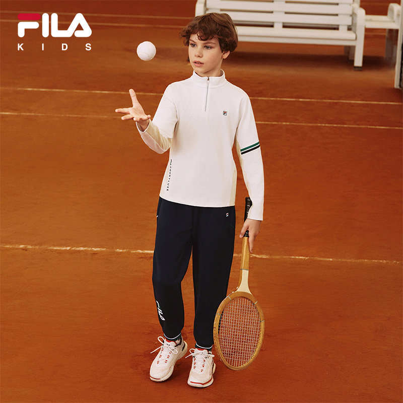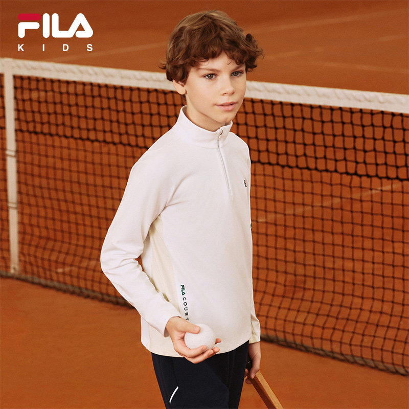 FILA斐乐儿童长袖T恤2025年秋季新款男童中大童网球运动立领上衣