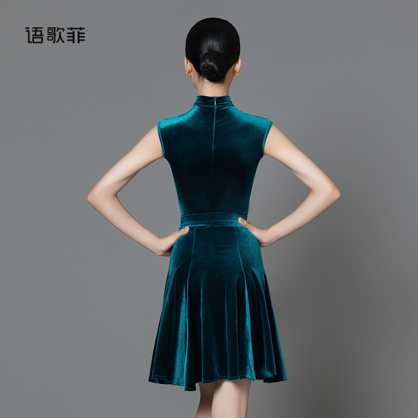 语歌菲拉丁舞服女童比赛规定服坎袖小高领亮面丝绒无鱼骨演出服