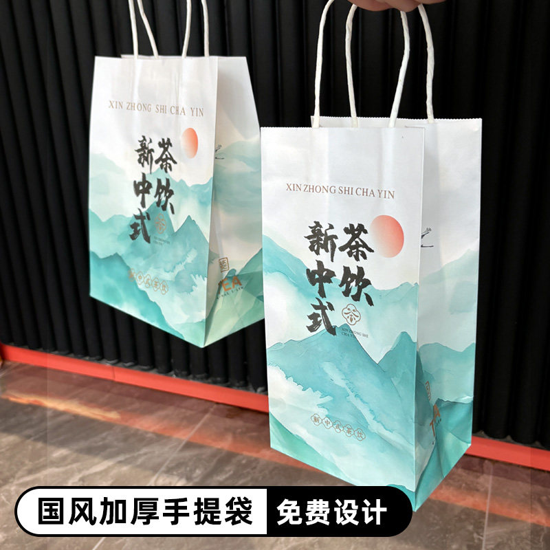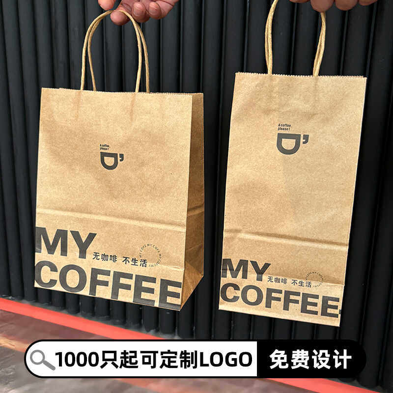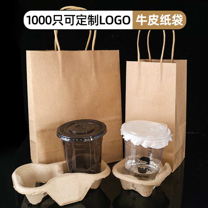 一次性牛皮纸袋子手提奶茶咖啡饮料打包袋单杯双杯纸浆杯托定制