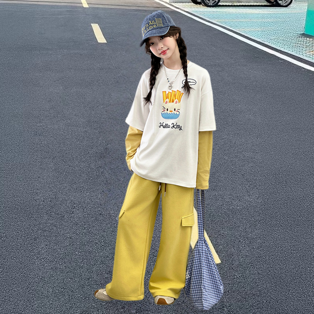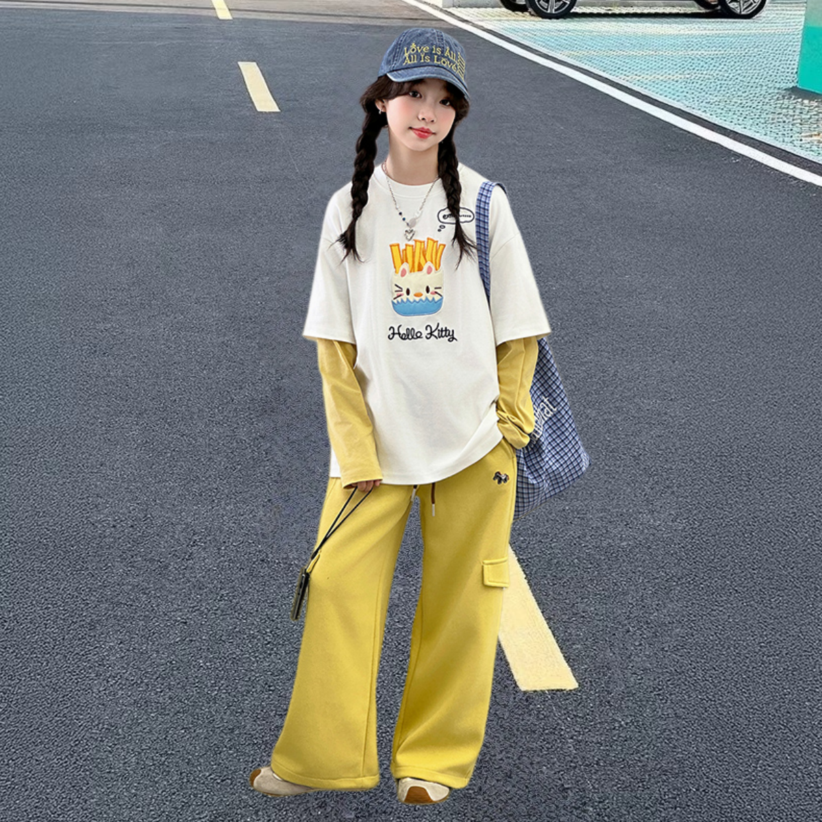 2026超火女童装套装新款儿童春季T恤阔腿裤中大童女孩春装两件套