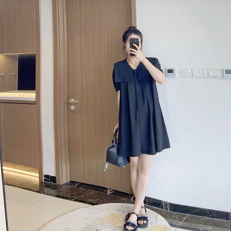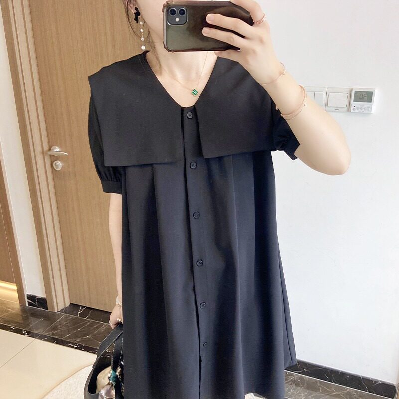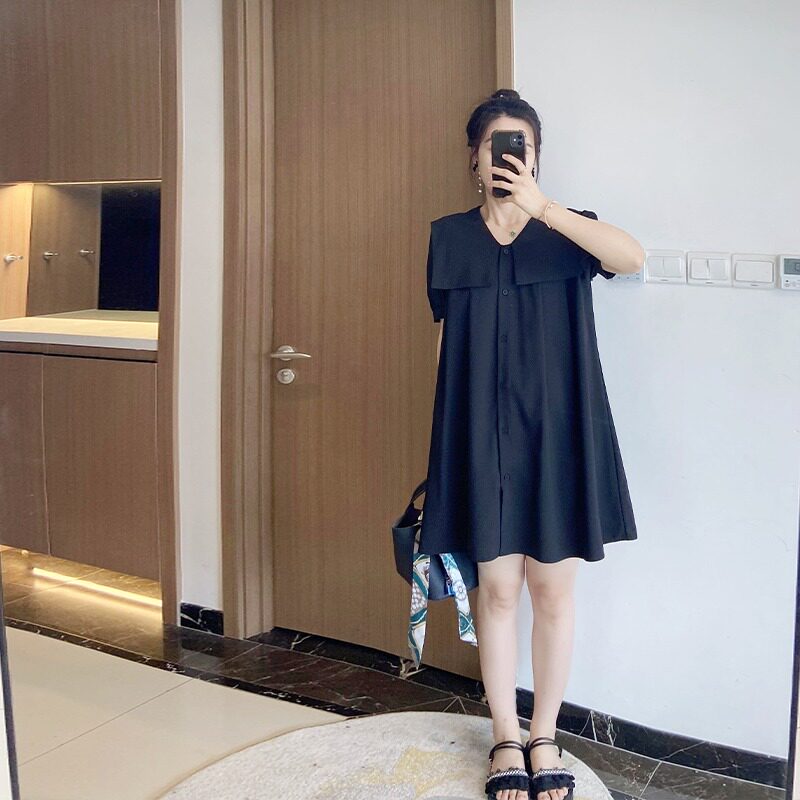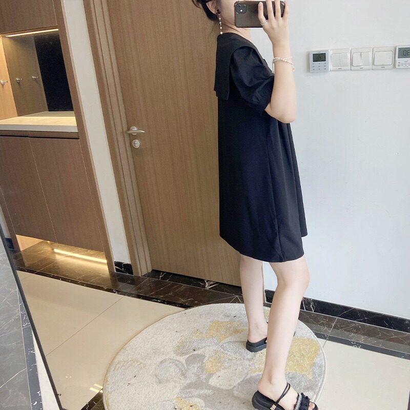 大码高端女胖mm韩版遮肚子显瘦夏季a字微胖连衣裙海军领减龄2024
