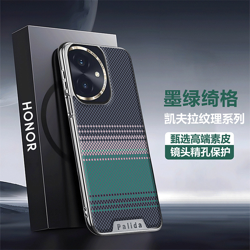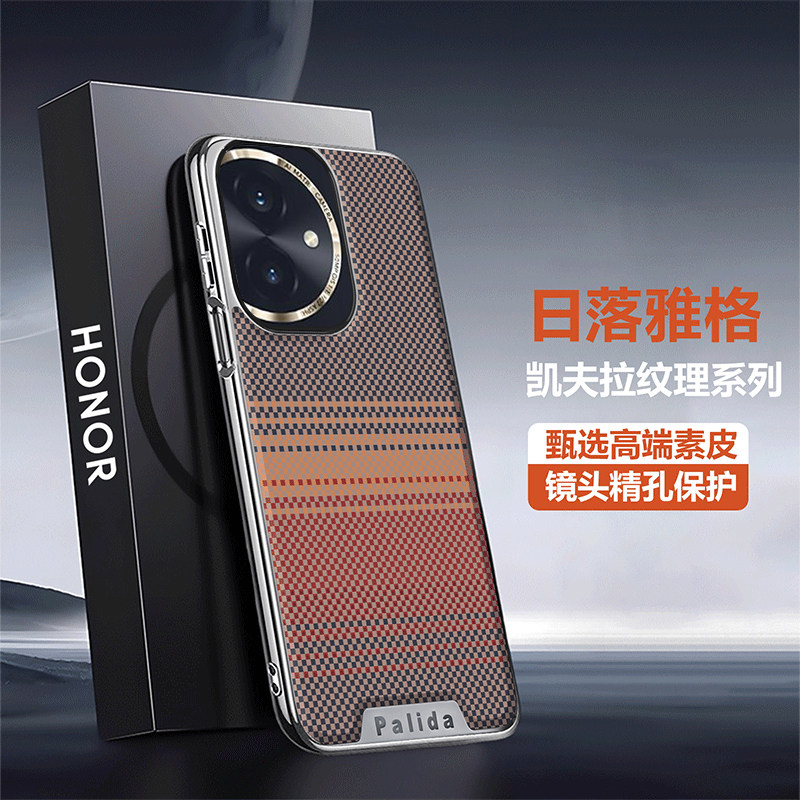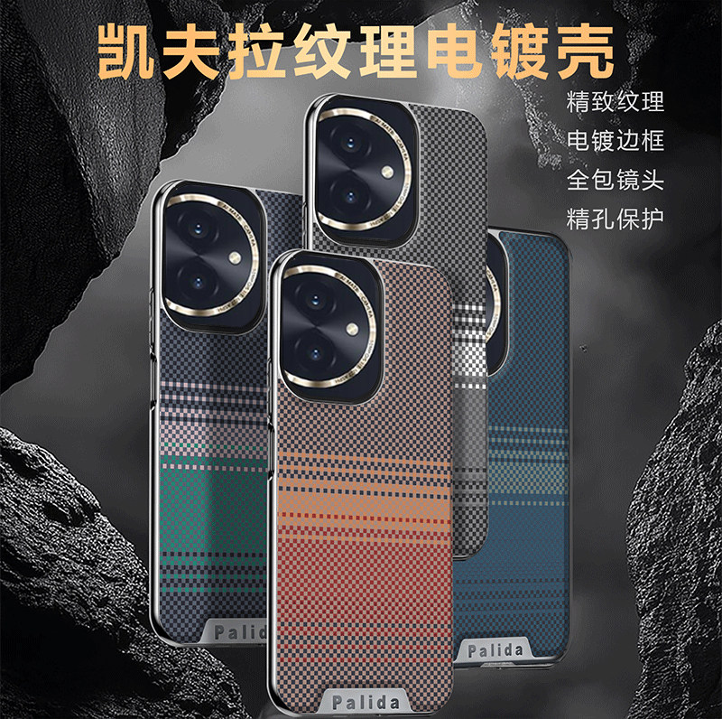 荣耀60手机壳新款凯夫拉纹时尚商务硬壳适用HONOR60Pro高级感电镀素皮创意简约拼色个性超薄防摔奢华女保护套