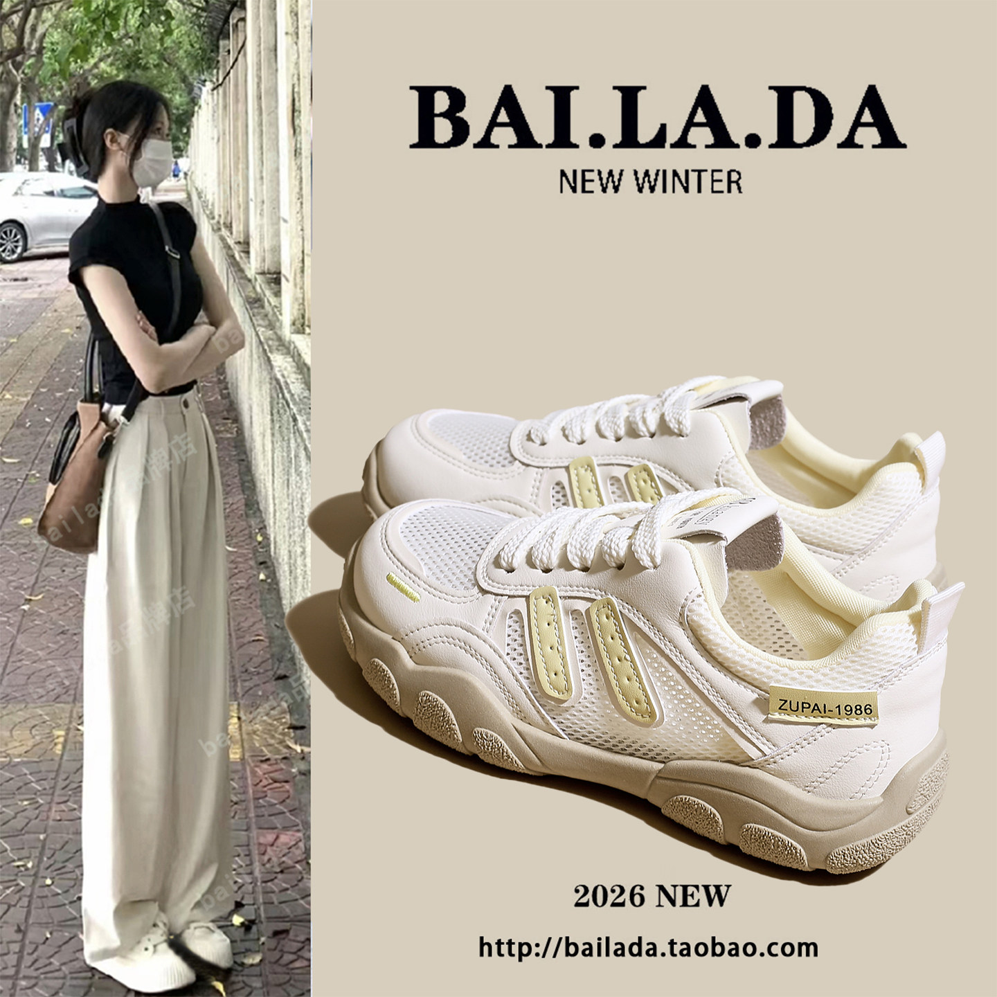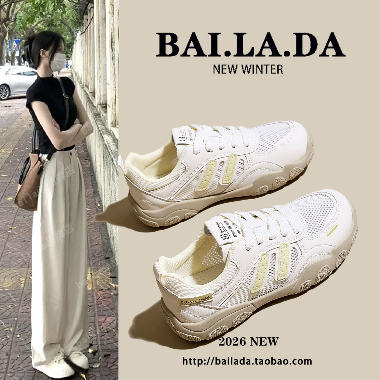 爆款超火透气网面运动德训鞋女款2026春季新款百搭休闲小白女鞋子