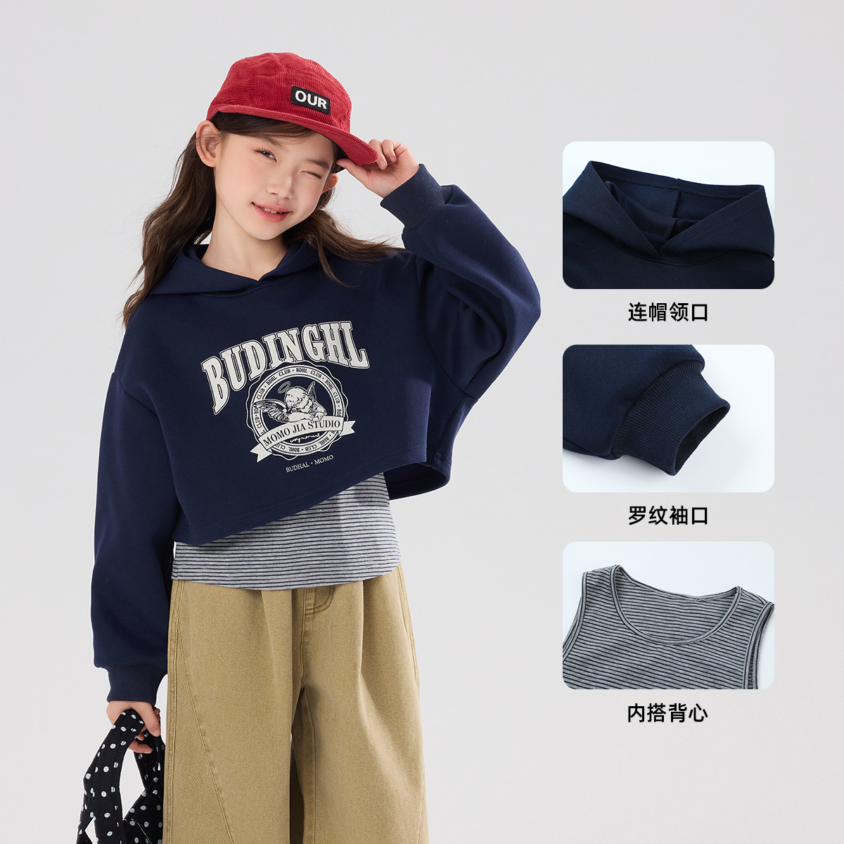 布丁哈鲁春装女童童装套装2026春季新款儿童街头潮酷卫衣两件套