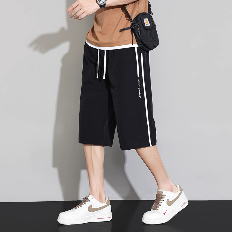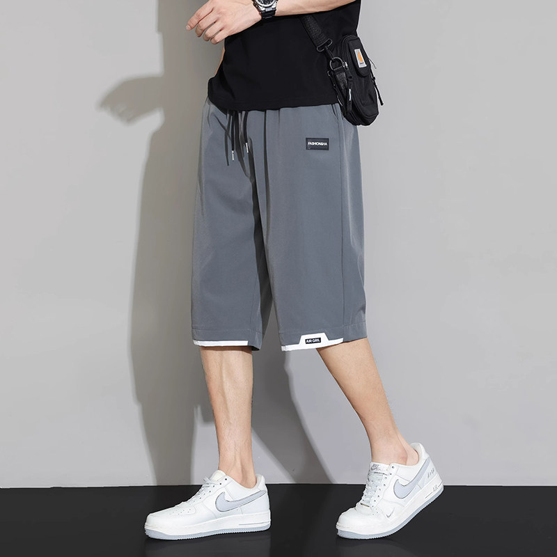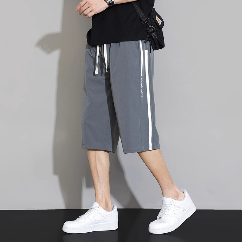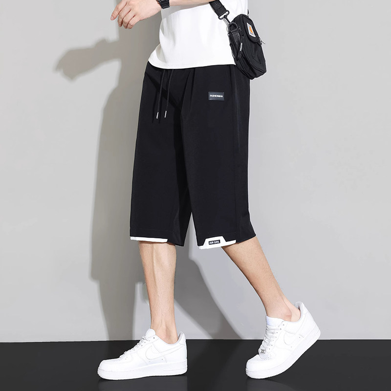 冰丝七分裤男士夏季薄款外穿宽松直筒休闲速干过膝运动短裤子男款