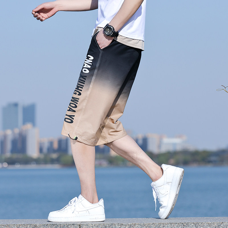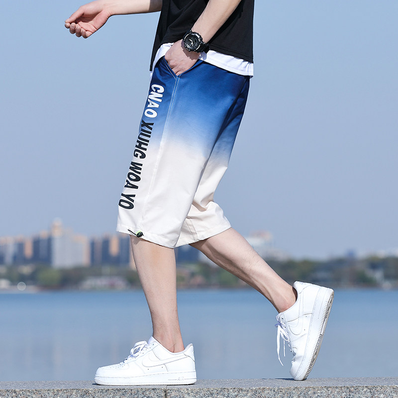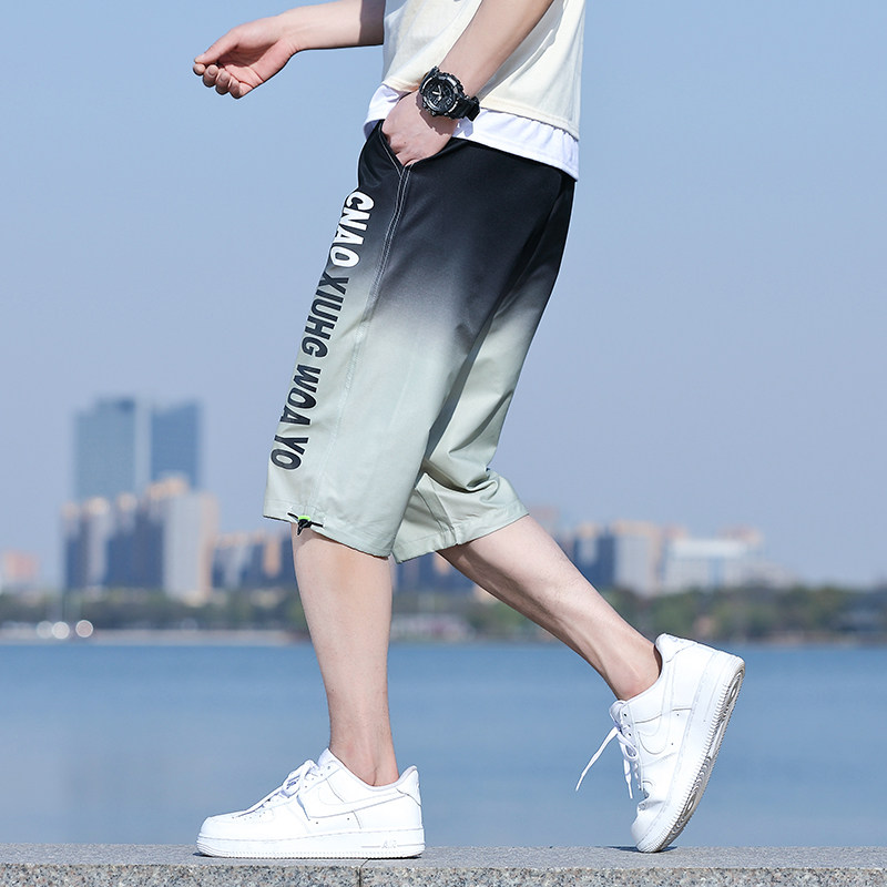 渐变短裤男士夏季薄款男款休闲运动七分裤子男生潮流冰丝五分中裤
