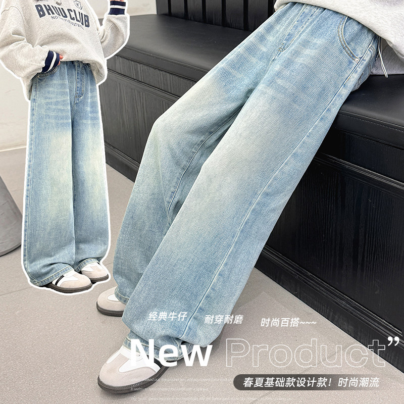 女童牛仔阔腿裤2026春夏装新款大童宽松直筒长裤春秋儿童外穿裤子
