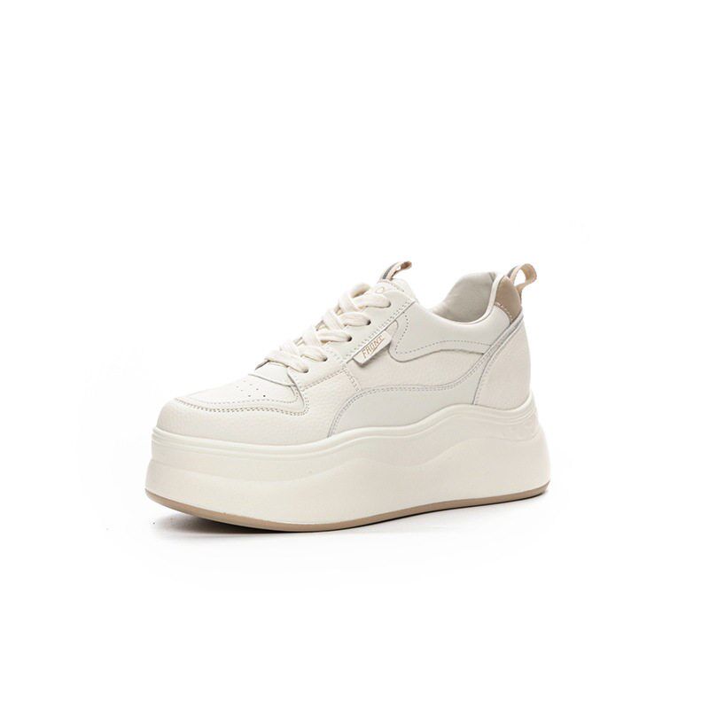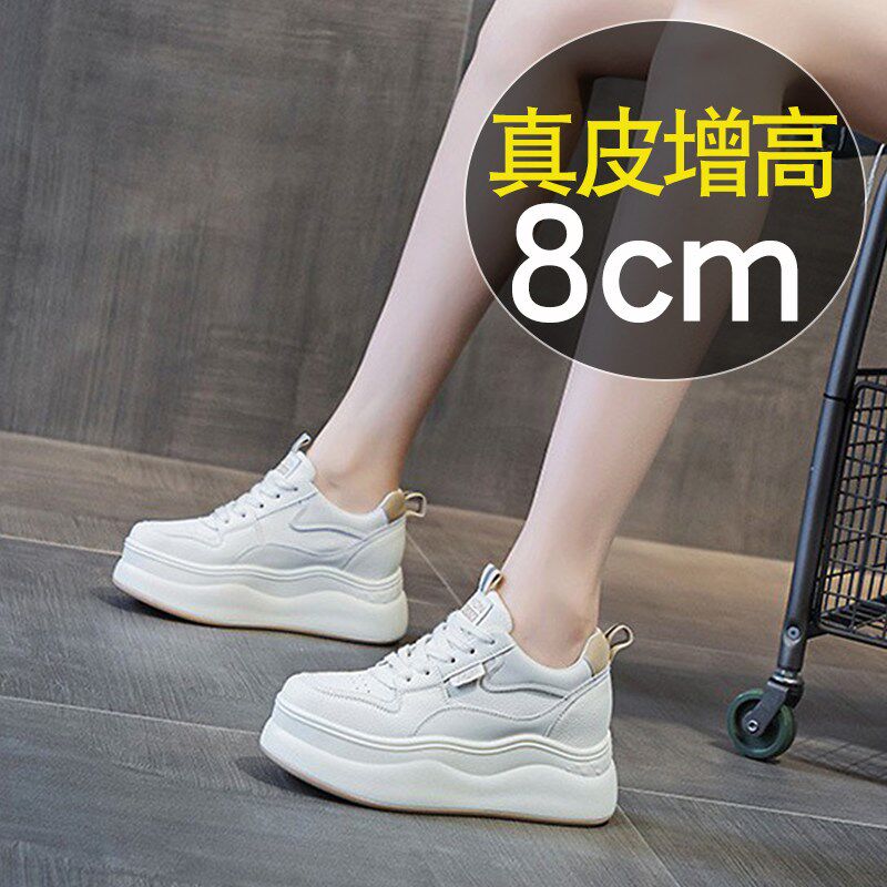 新品8cm内增高真皮小白鞋女鞋202E6春秋新款坡跟松糕厚底鞋小个子