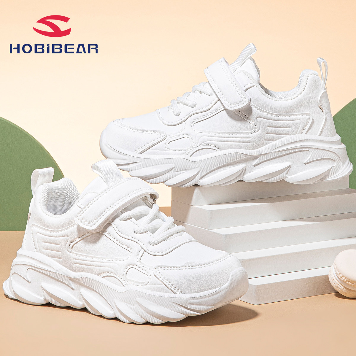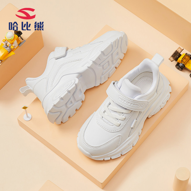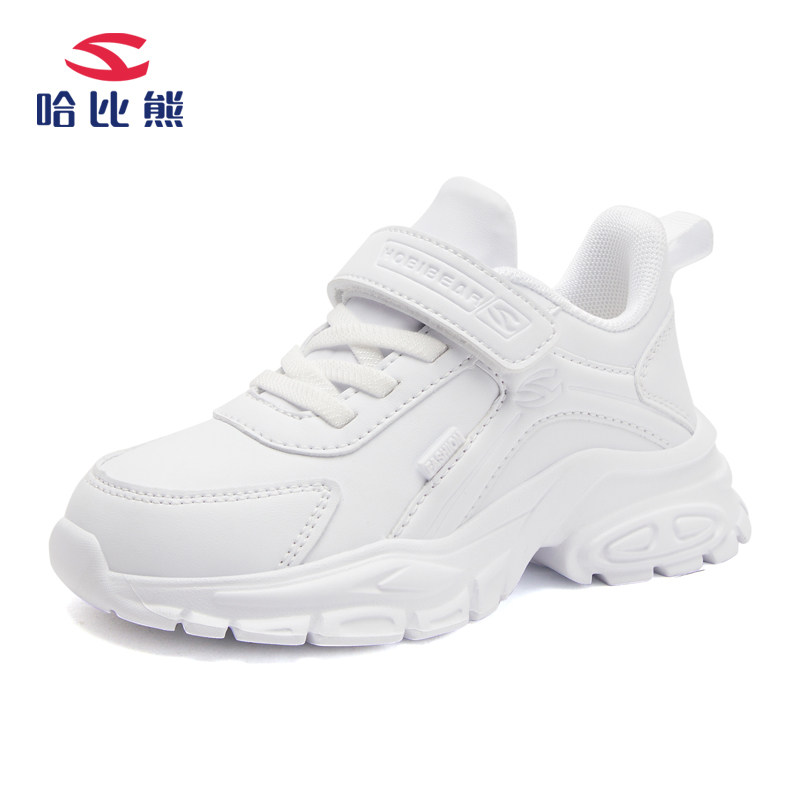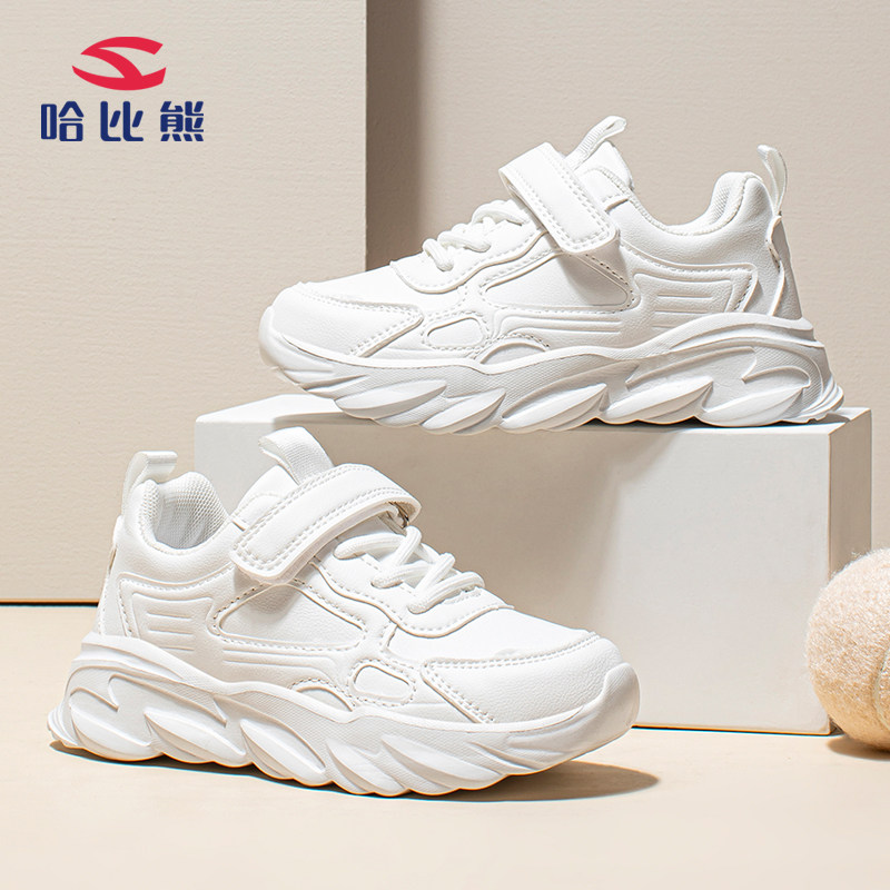 哈比熊儿童小白鞋春夏季皮面防水7男童运动鞋8女童白色跑步鞋9岁
