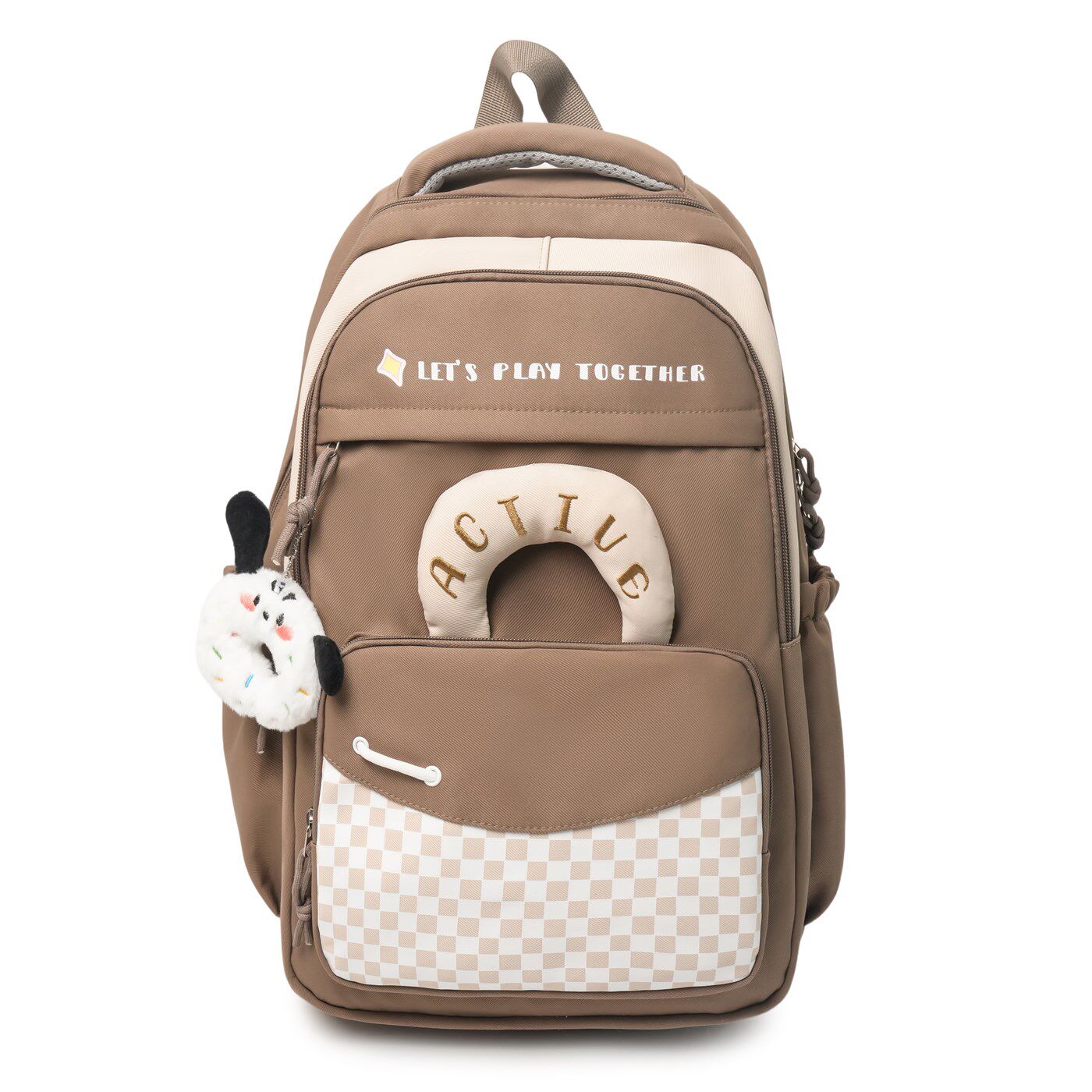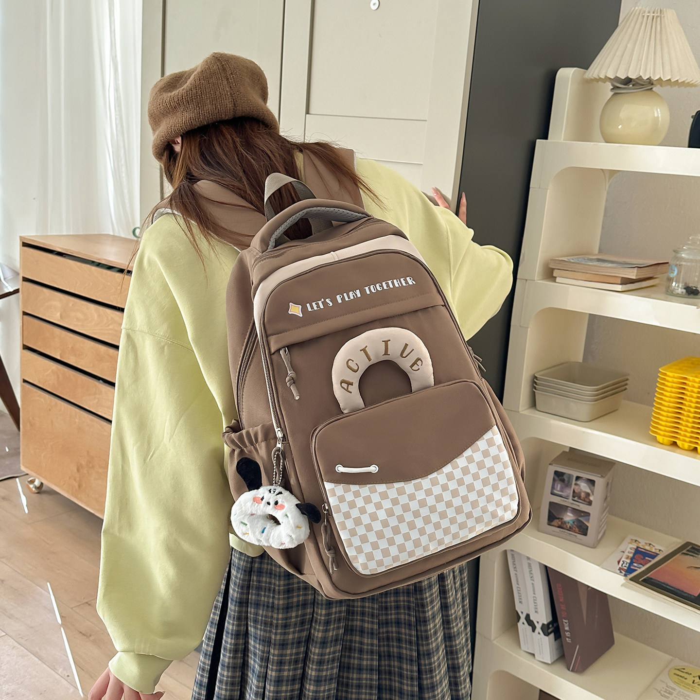 高颜值格子拼接双肩包包女韩国小学生校园轻便大容量书包简约背包