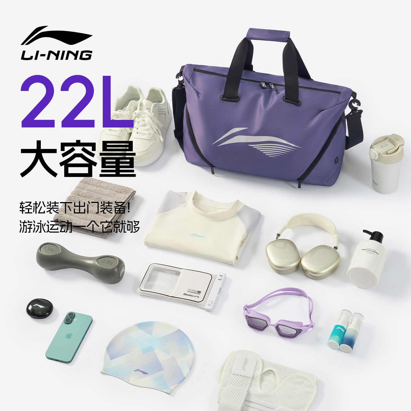 李宁干湿分离泳包女式游泳专用包运动健身包女生高级感防水斜挎包