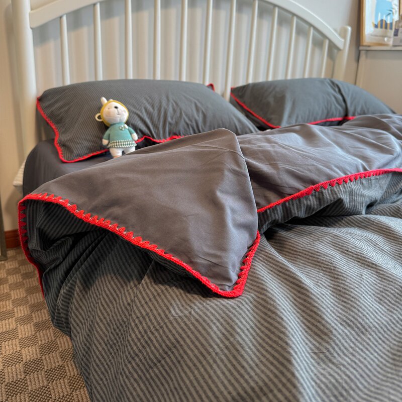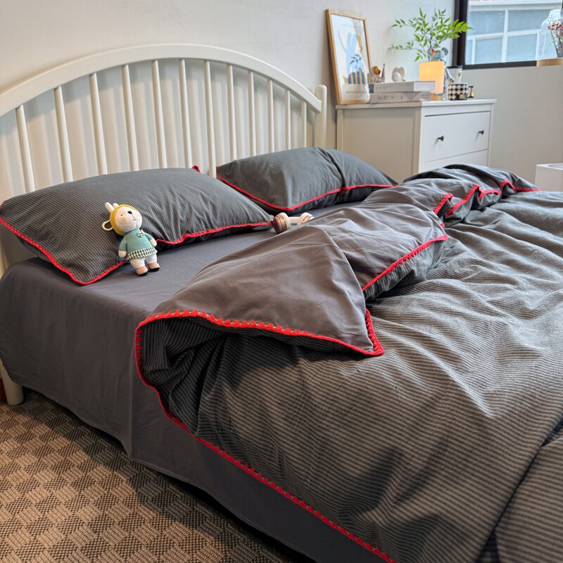 简约条纹男生耐脏全棉色织水洗棉床上四件套纯棉床单被套北欧床品