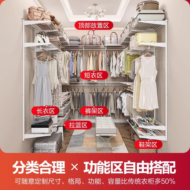 惠普登金属衣柜衣帽间框架定制卧室步入式砌墙衣柜储物间推拉移门