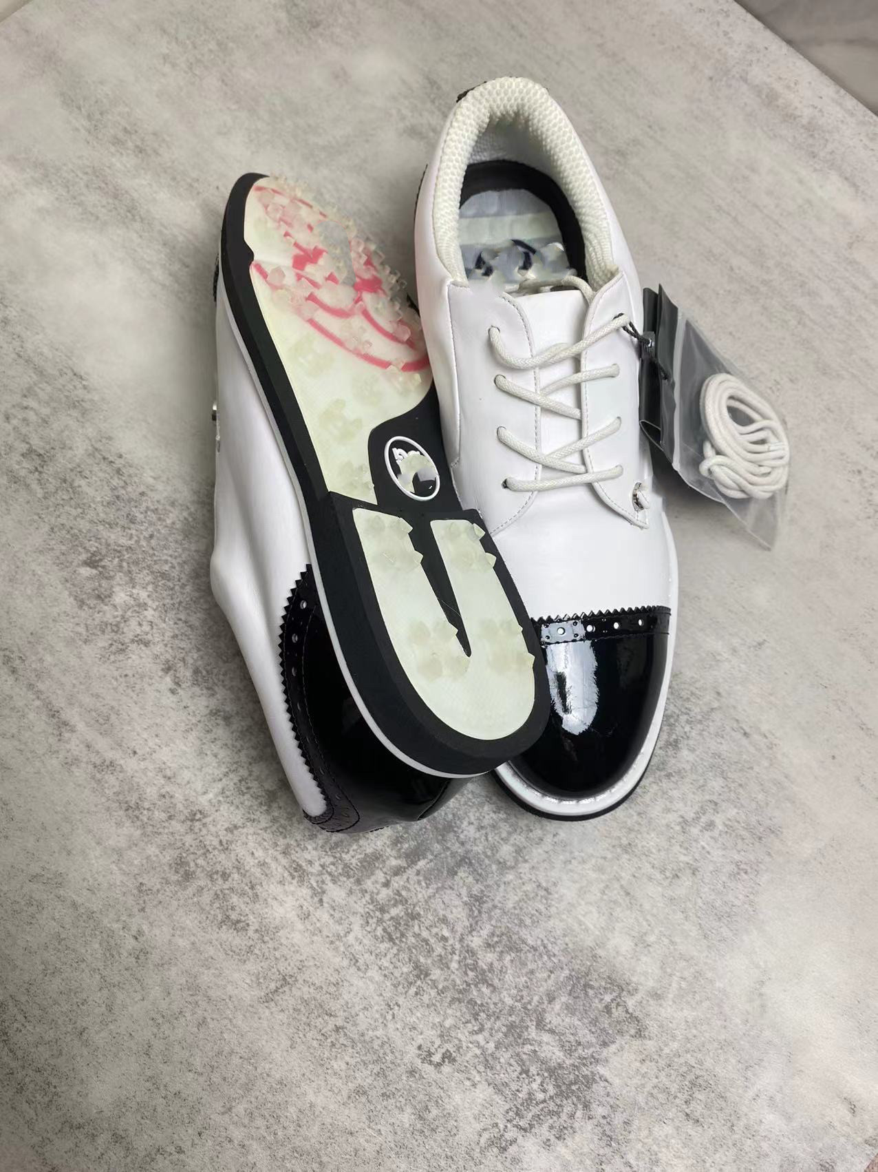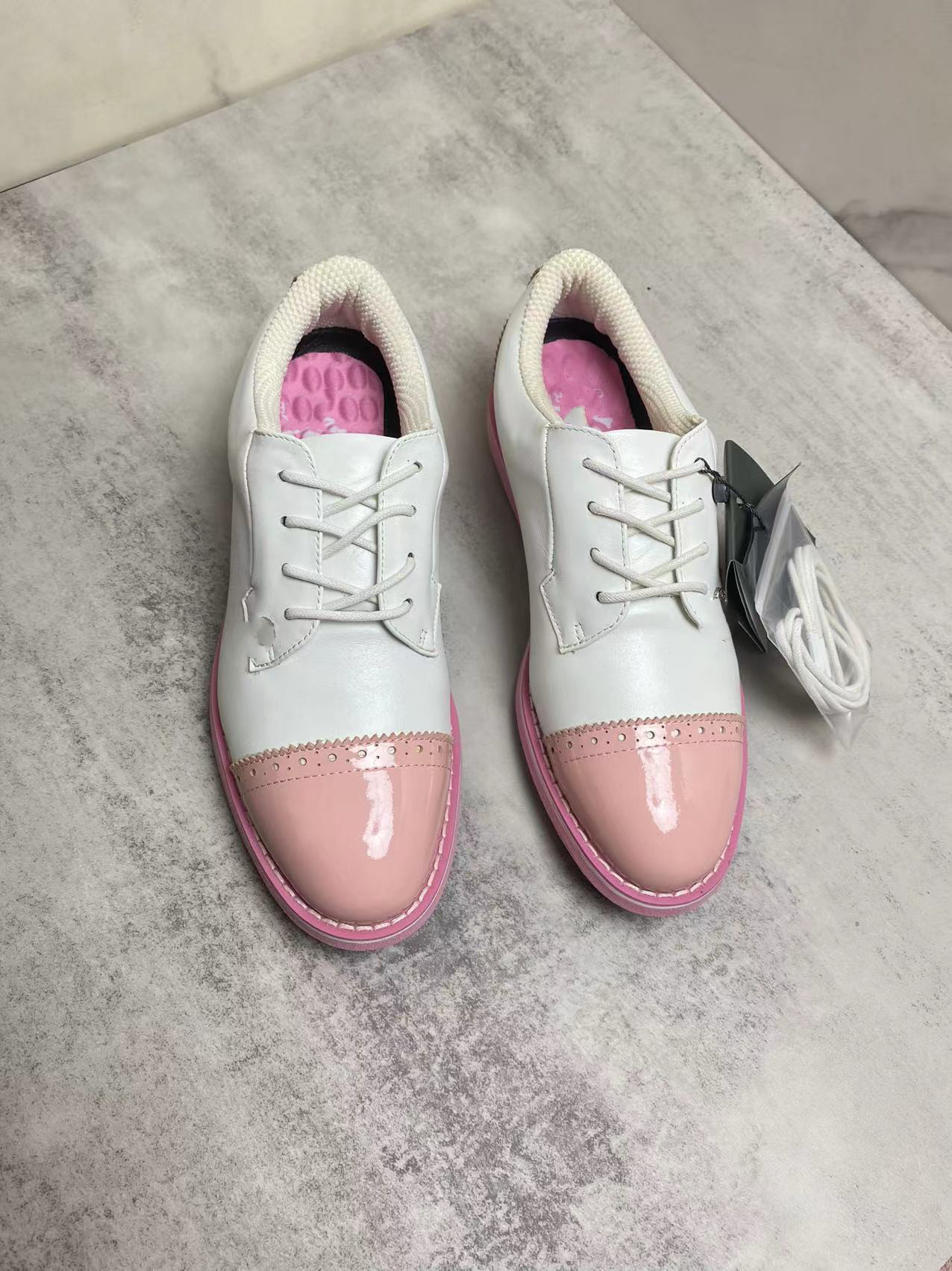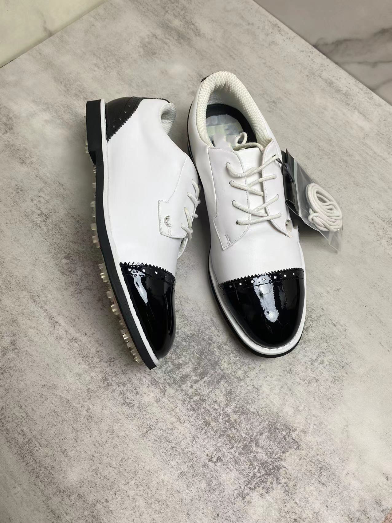 外贸纯原新款高尔夫头层牛皮鞋带女鞋防滑透气带钉鞋运动休闲鞋子