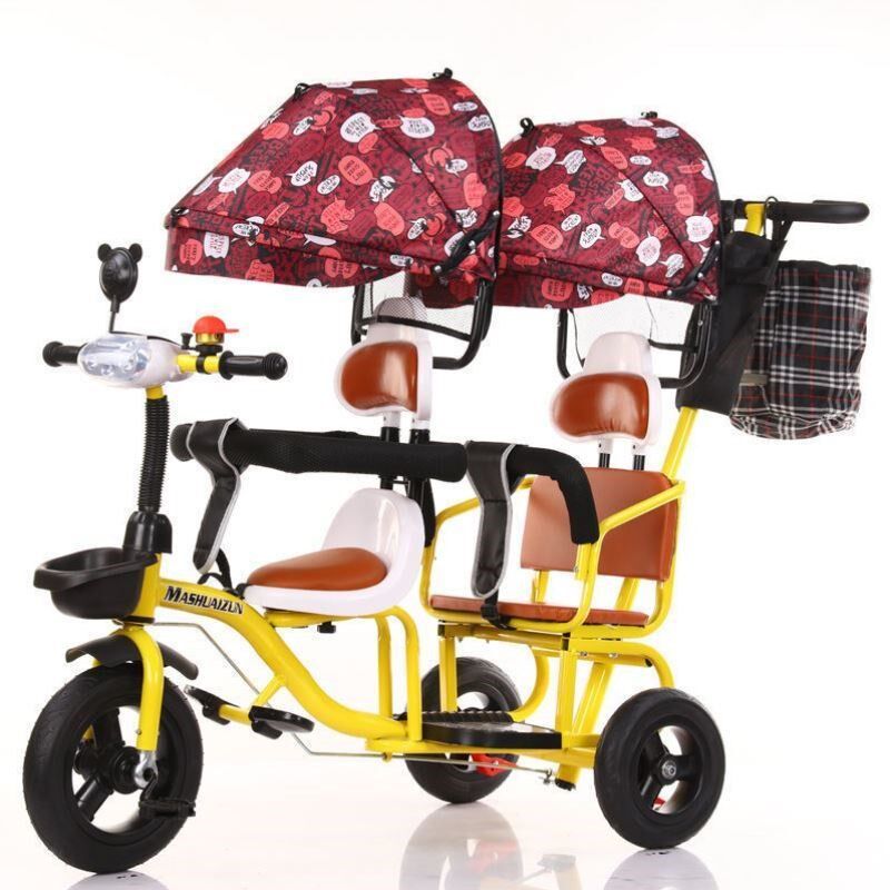 儿童双人三轮车双座二胎脚踏手推车宝宝婴儿幼儿大号1-7岁手推车6