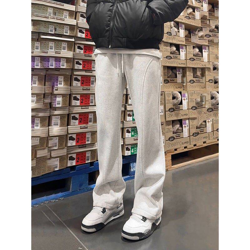 青少年加长版灰色卫裤男高个子春秋冬加绒加厚直筒微弹休闲裤裤子