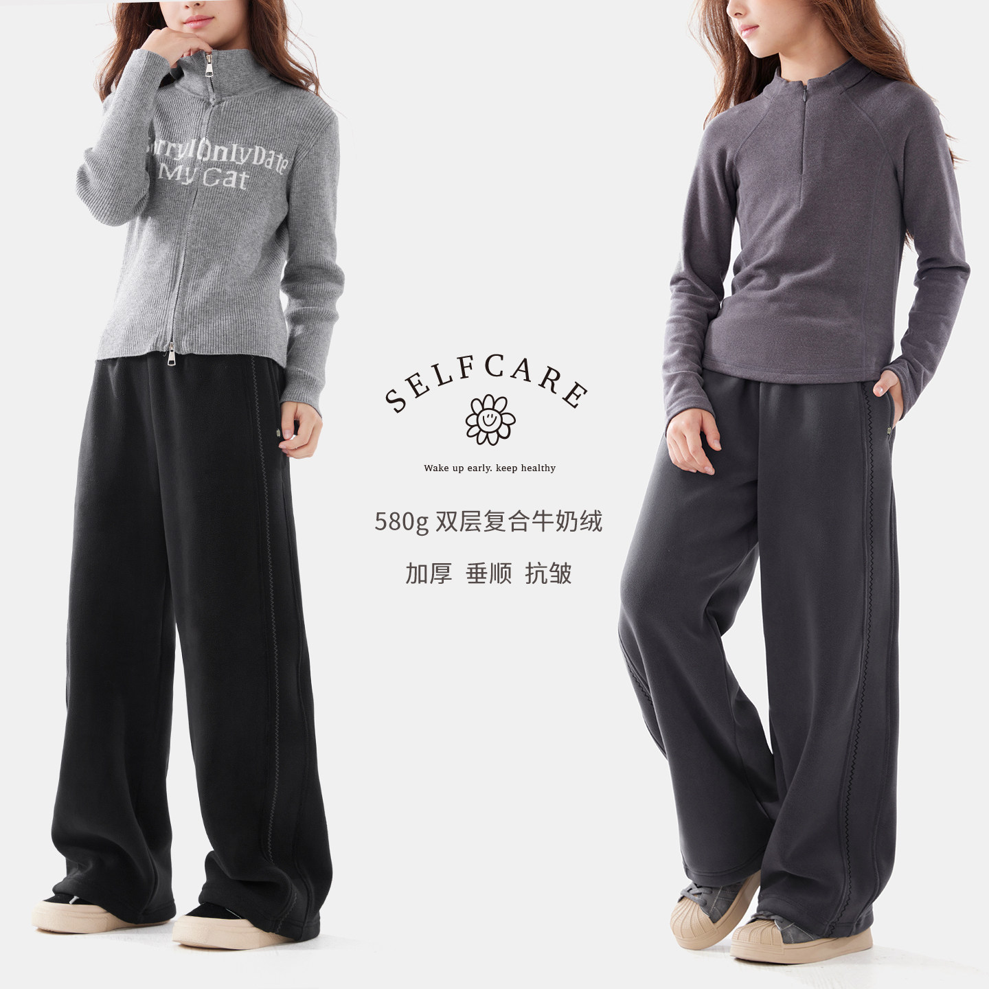 女童裤子冬季新款儿童加绒加厚直筒裤大童青少年保暖洋气长裤童装