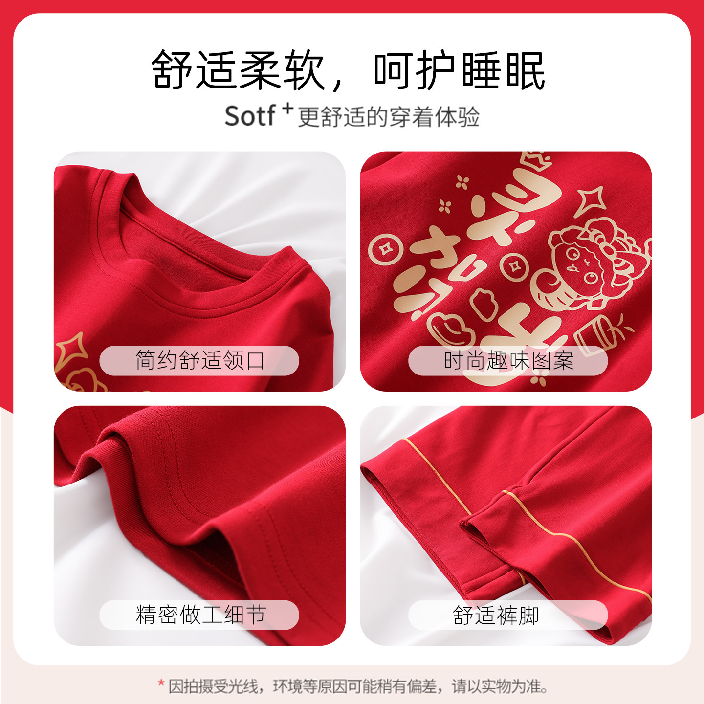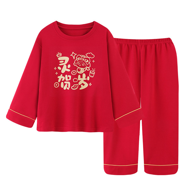 男童红色睡衣马年纯棉长袖春秋季中大童男孩2026新款本命年家居服
