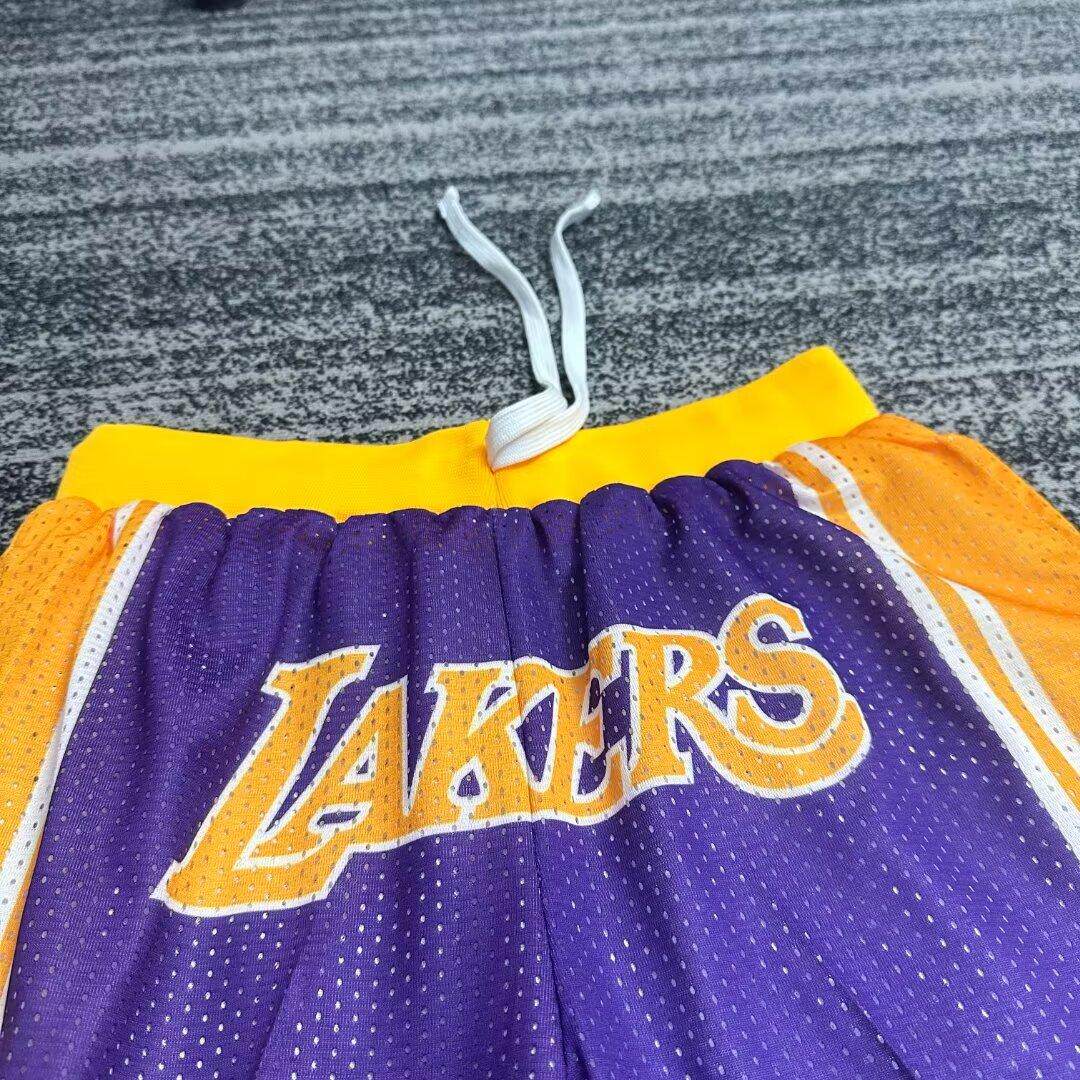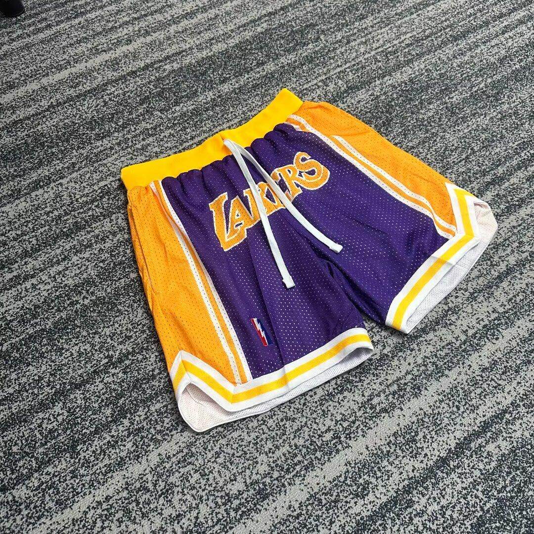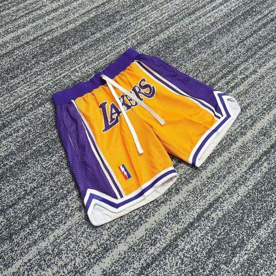 美式双层四分短裤男士湖人詹姆斯运动训练裤大网眼刺绣标篮球裤女