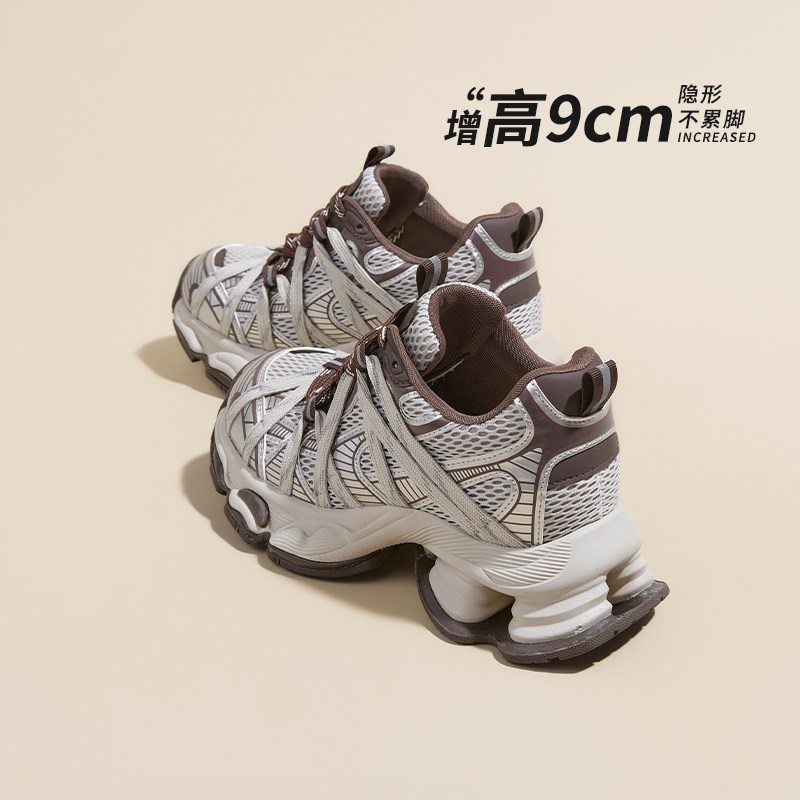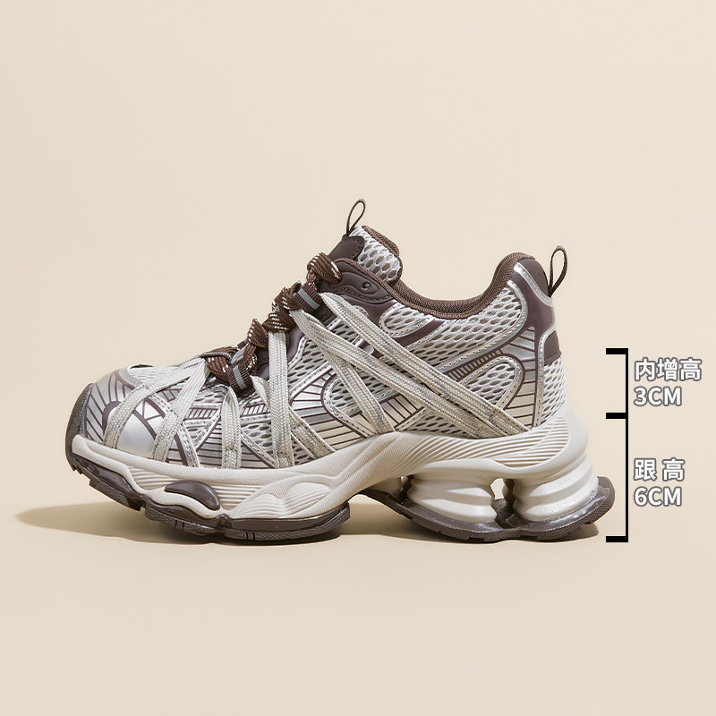 9cm内增高老爹鞋女2026新款春季绑带网面透气厚底轻便休闲运动鞋