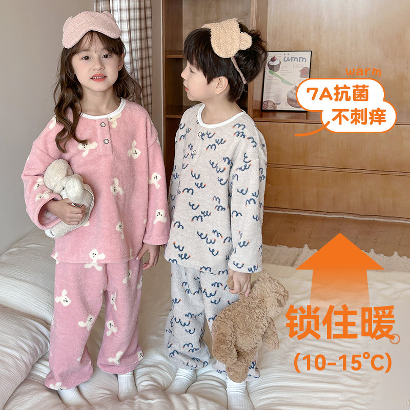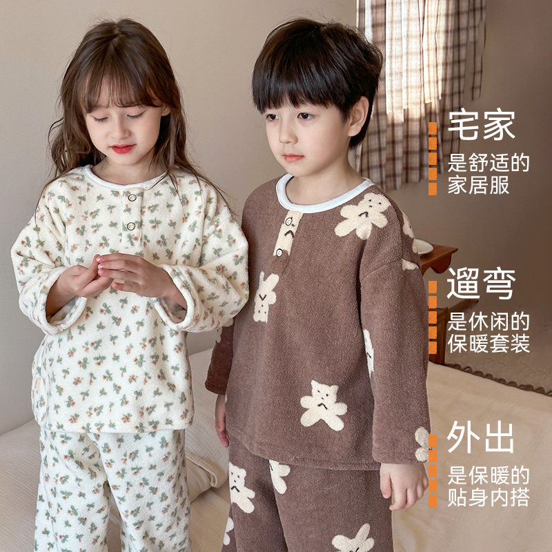 儿童睡衣秋冬新款男童女童珊瑚绒家居服泡芙绒保暖中大童宝宝套装