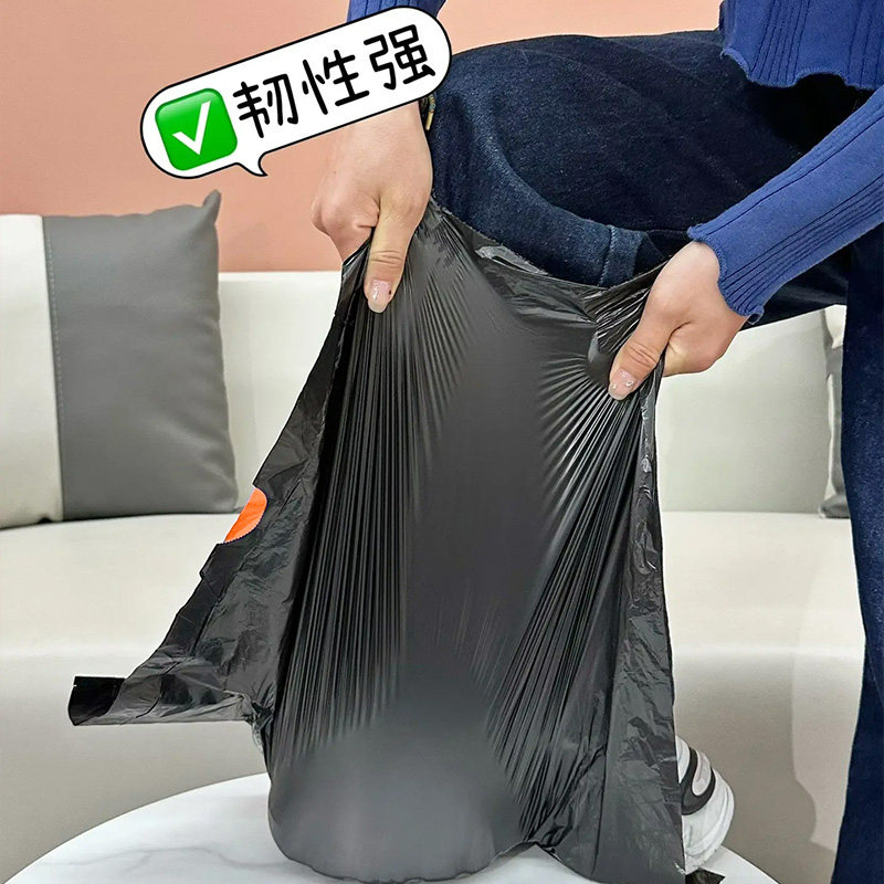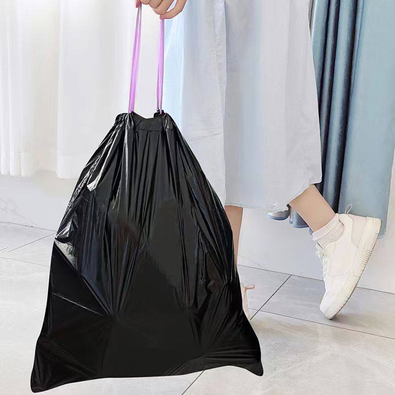 e洁垃圾袋手提式加厚加大家用厨房宿舍双面3丝黑色特厚抽绳塑料袋