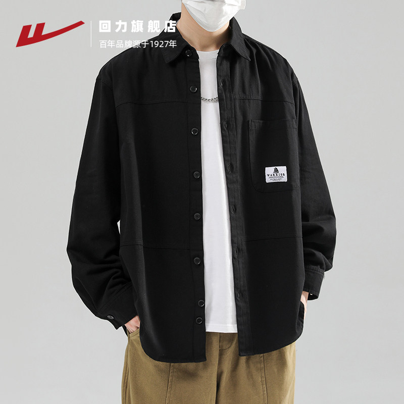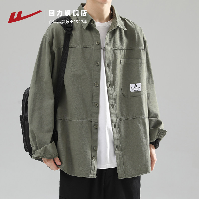 回力衬衫外套男士春秋新款长袖上衣纯棉工装潮牌休闲开衫夹克男款