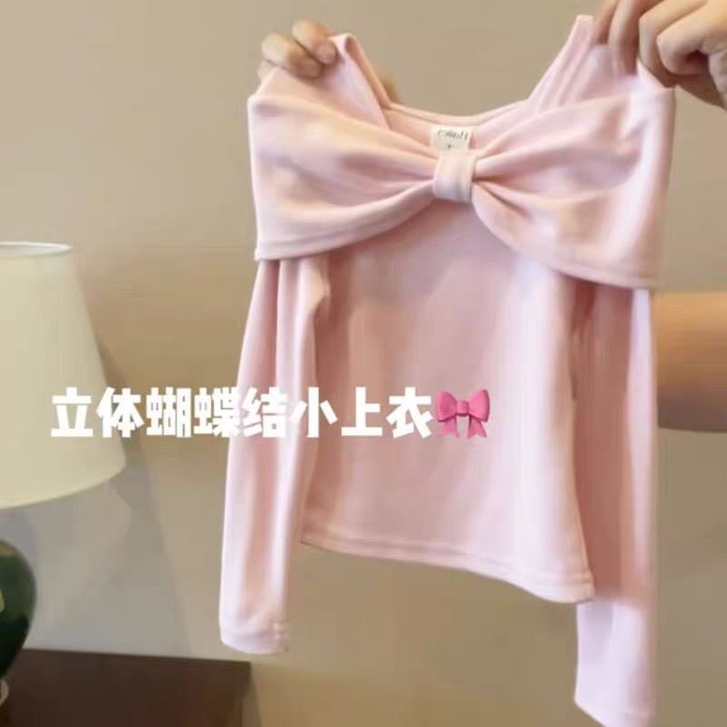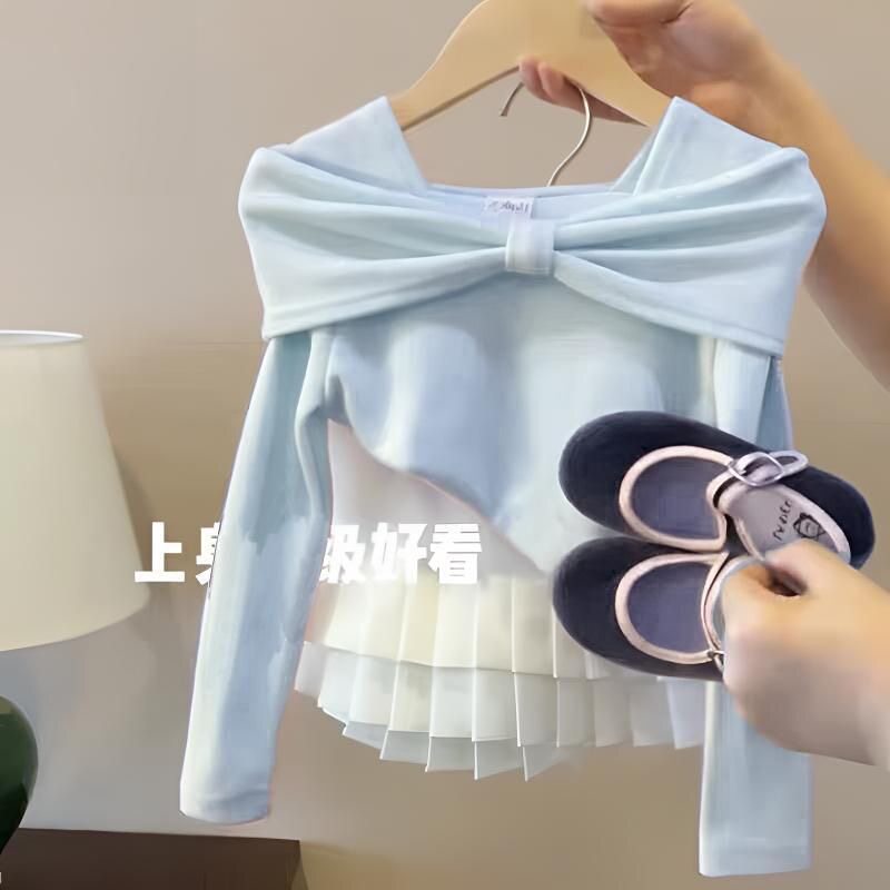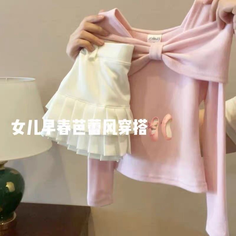 女童春装套装2026新款中大童韩系蝴蝶结长袖上衣短裙甜美两件套