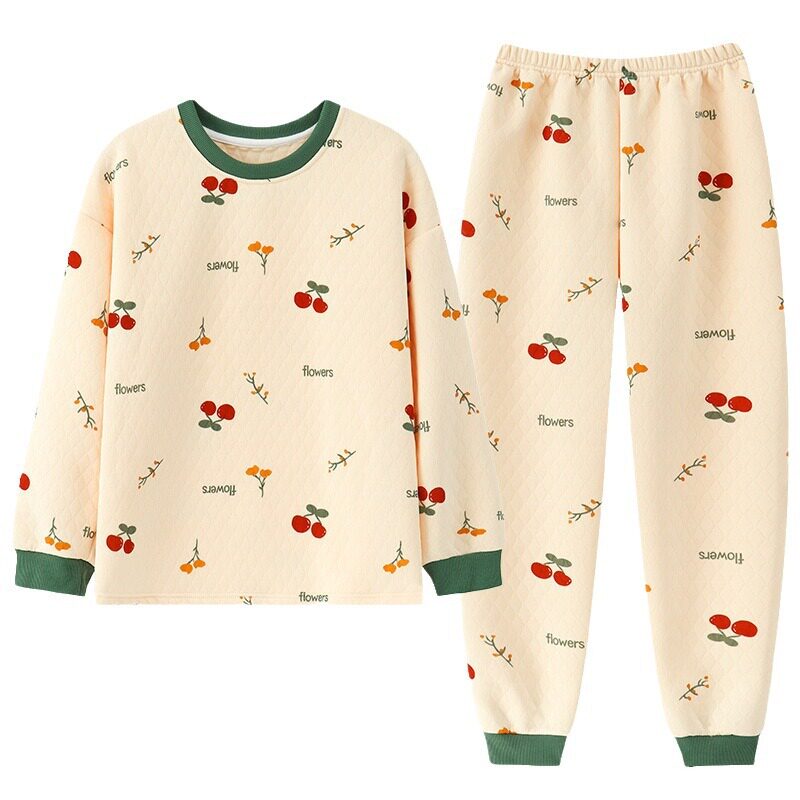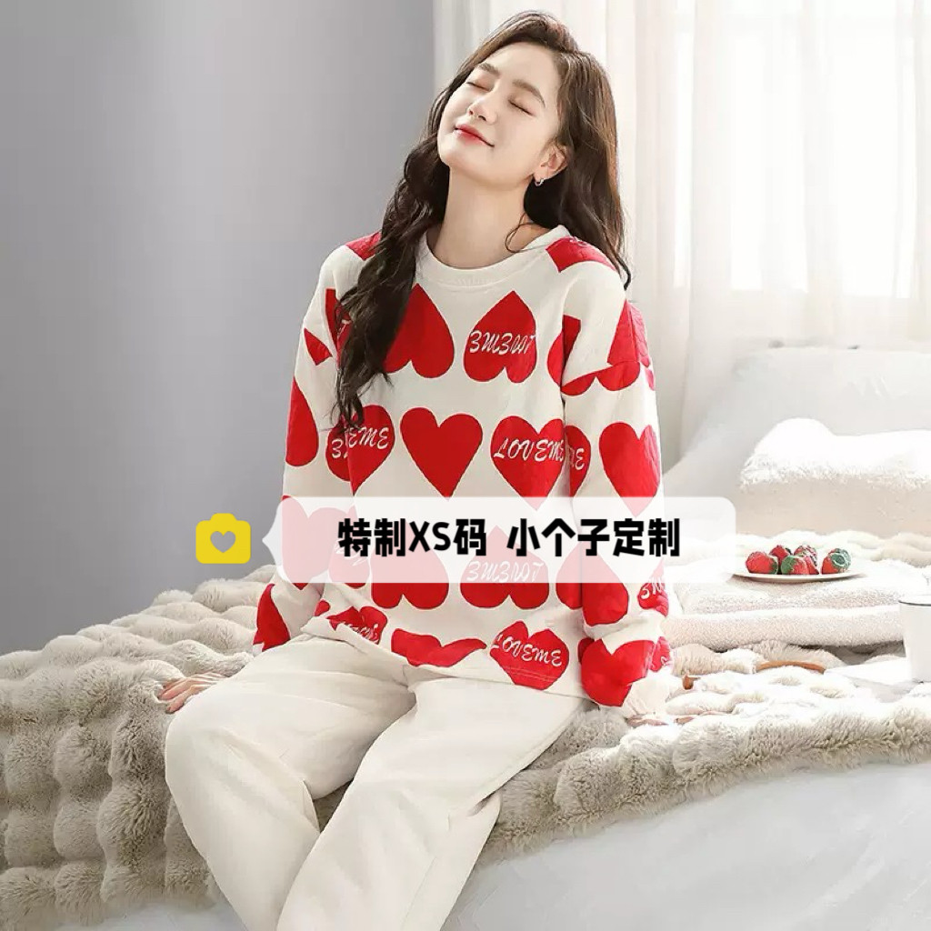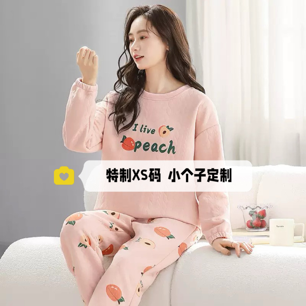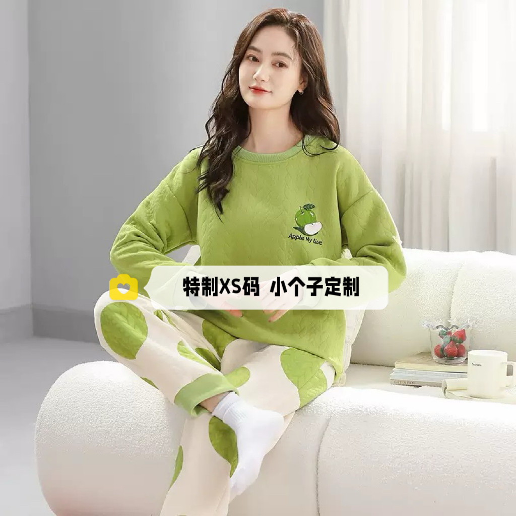 150cm小个子空气棉睡衣女秋冬针织棉套头加厚夹层夹棉家居服xs码
