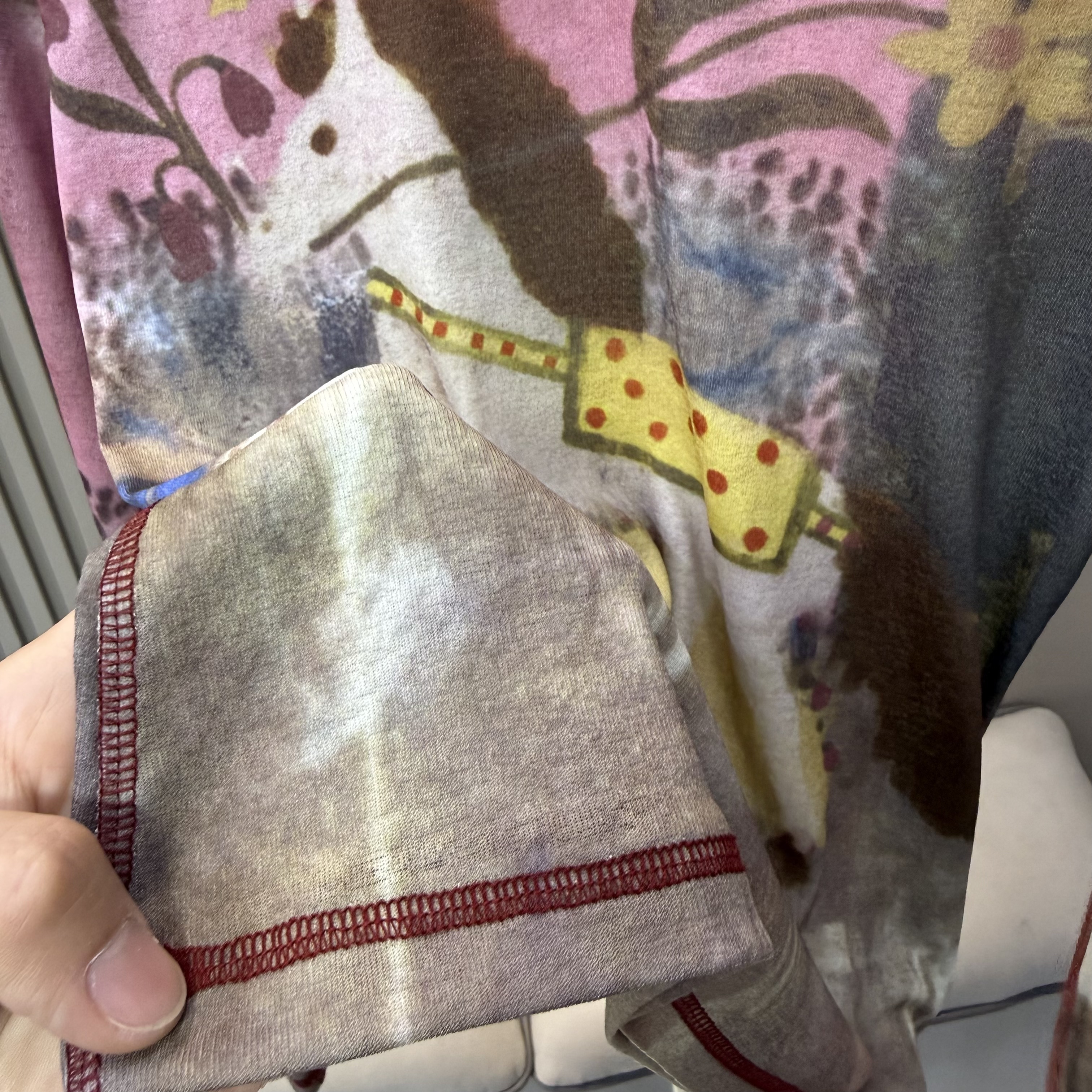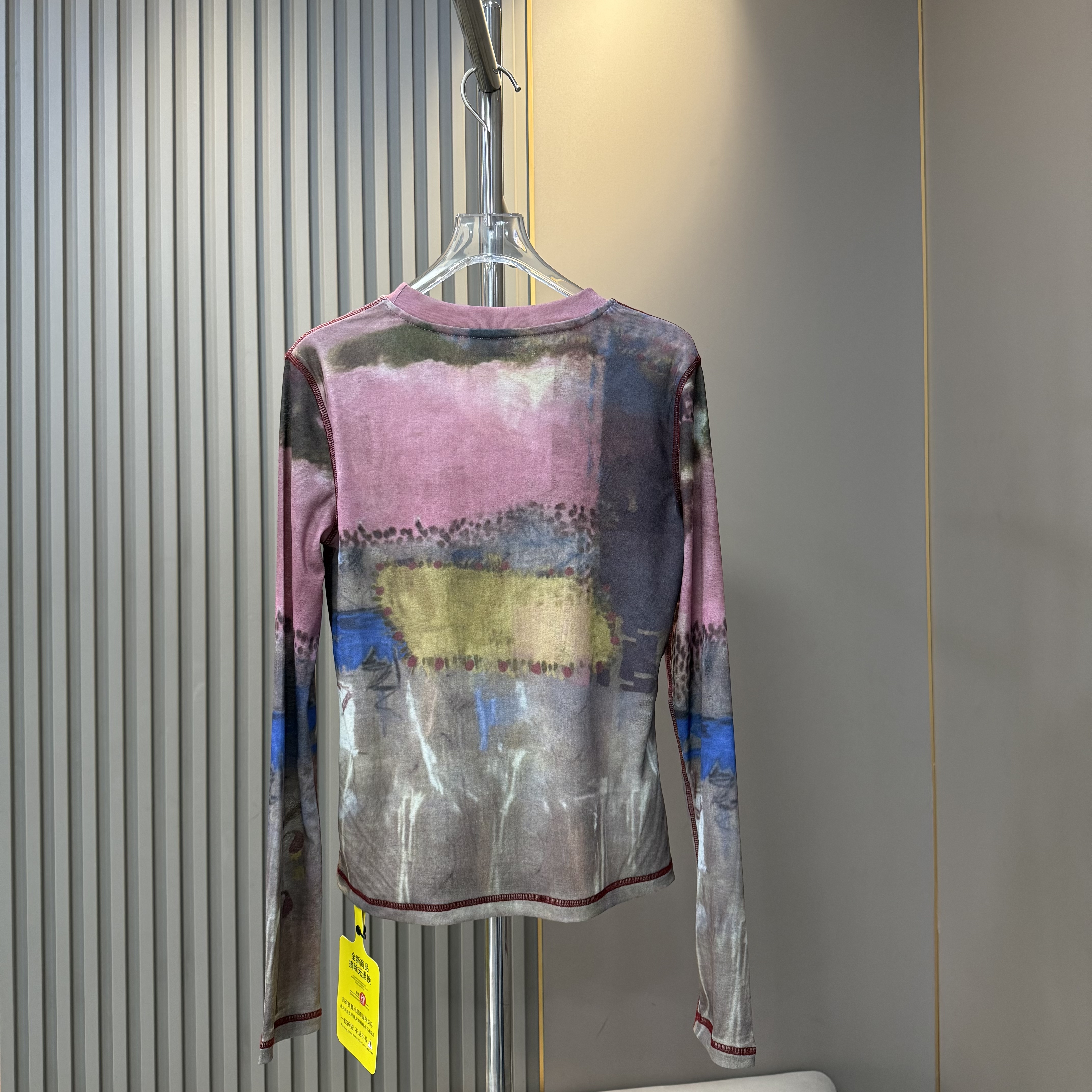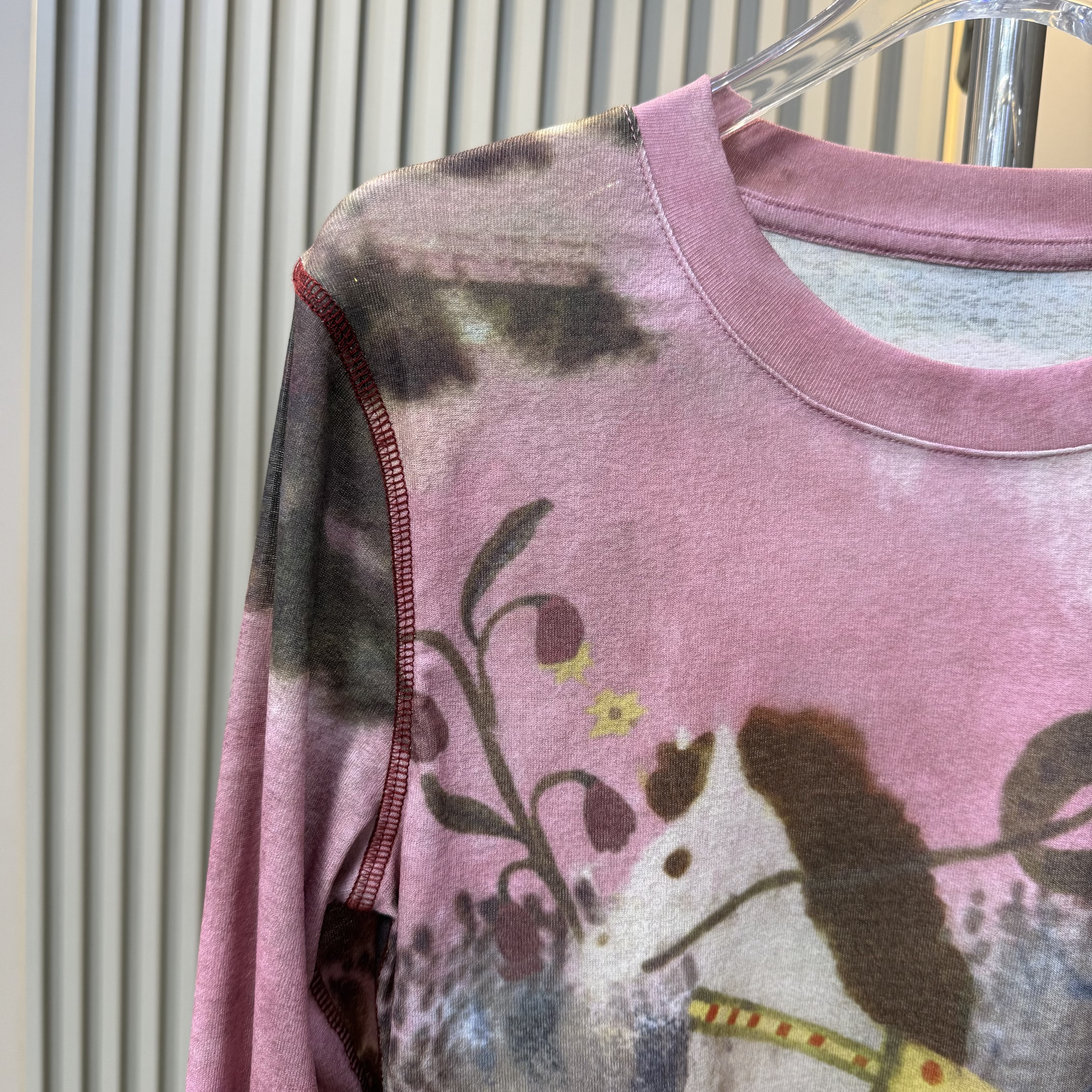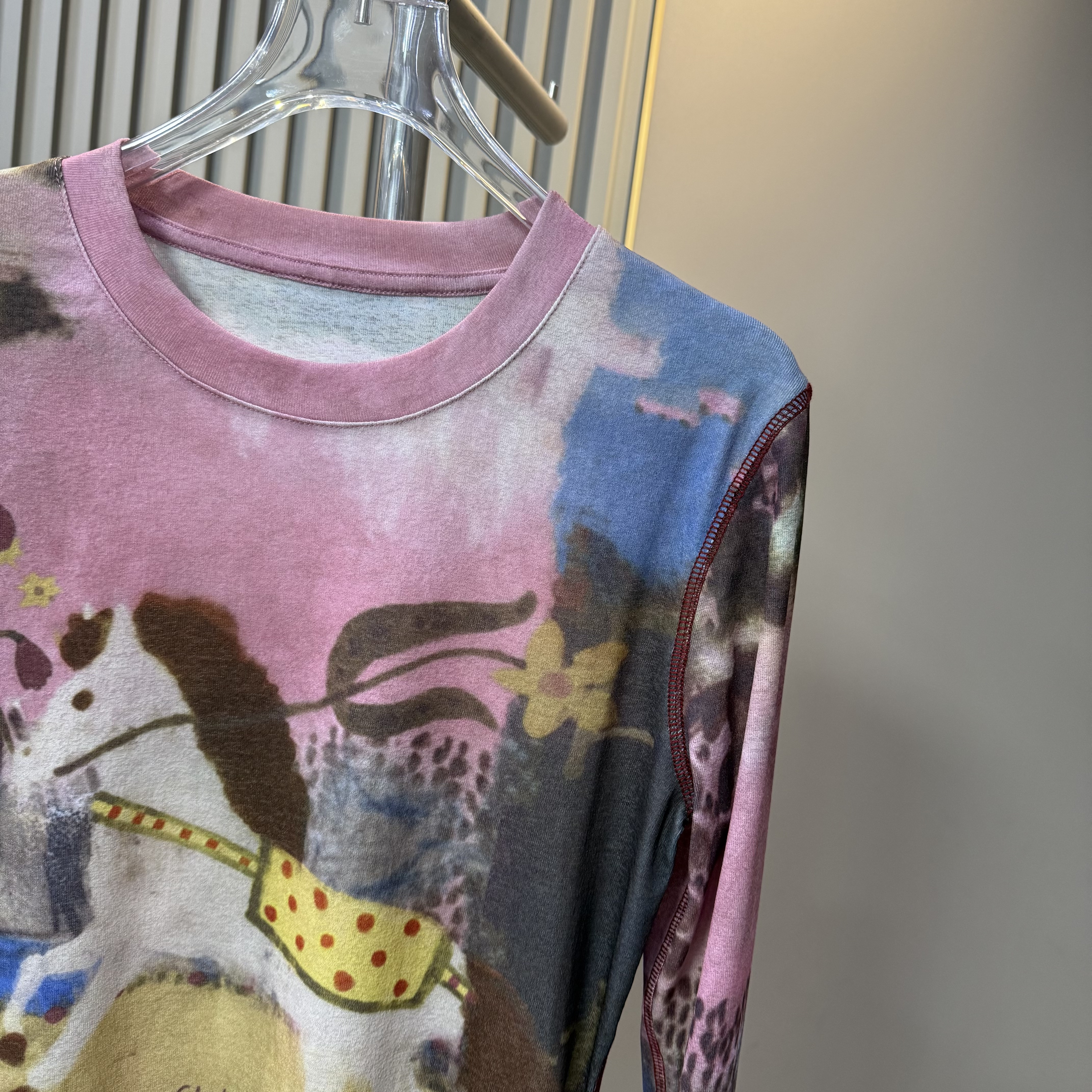 欧货2026早春新款时尚艺术油画晕染小马修身长袖女薄款上衣打底衫