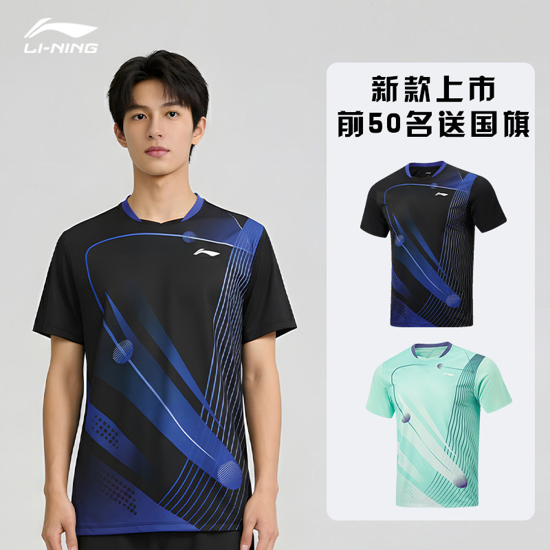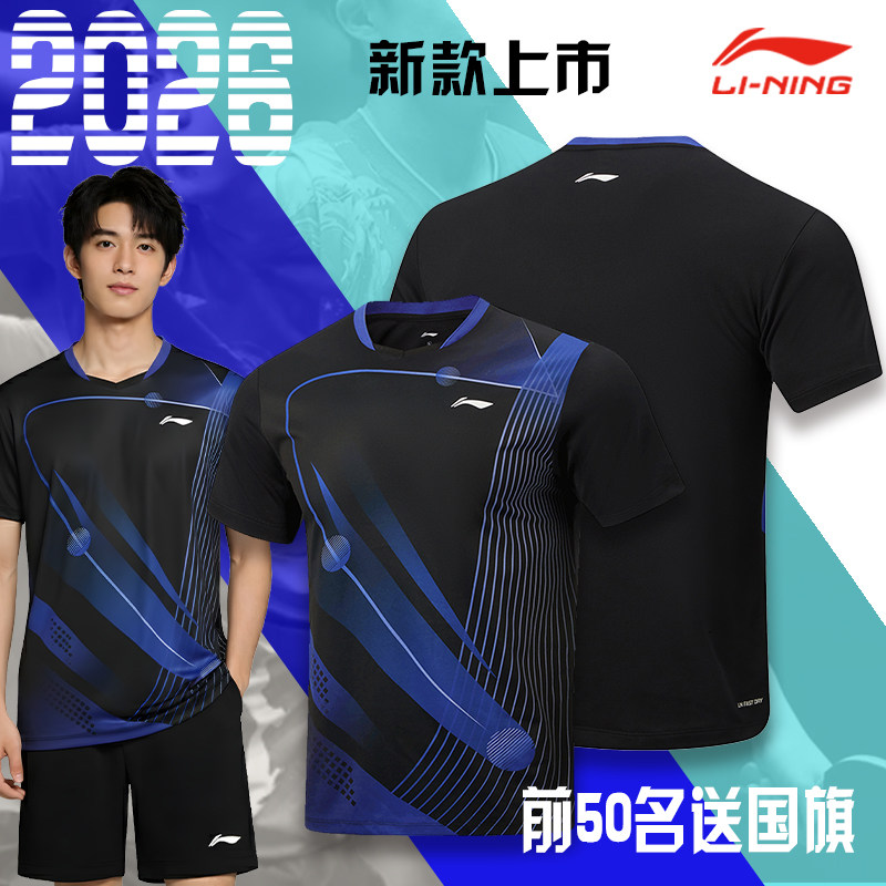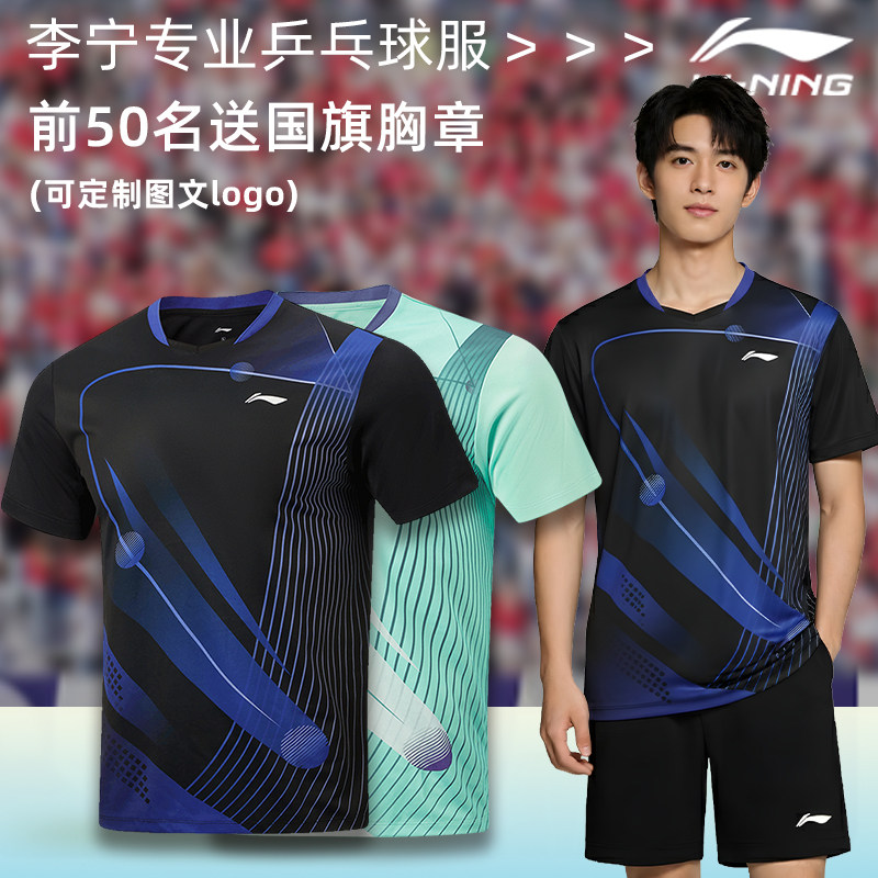 311线报网描述:李宁乒乓球运动服男款速干球衣短袖球衣套装