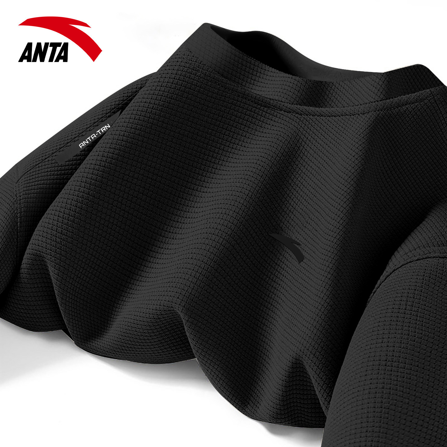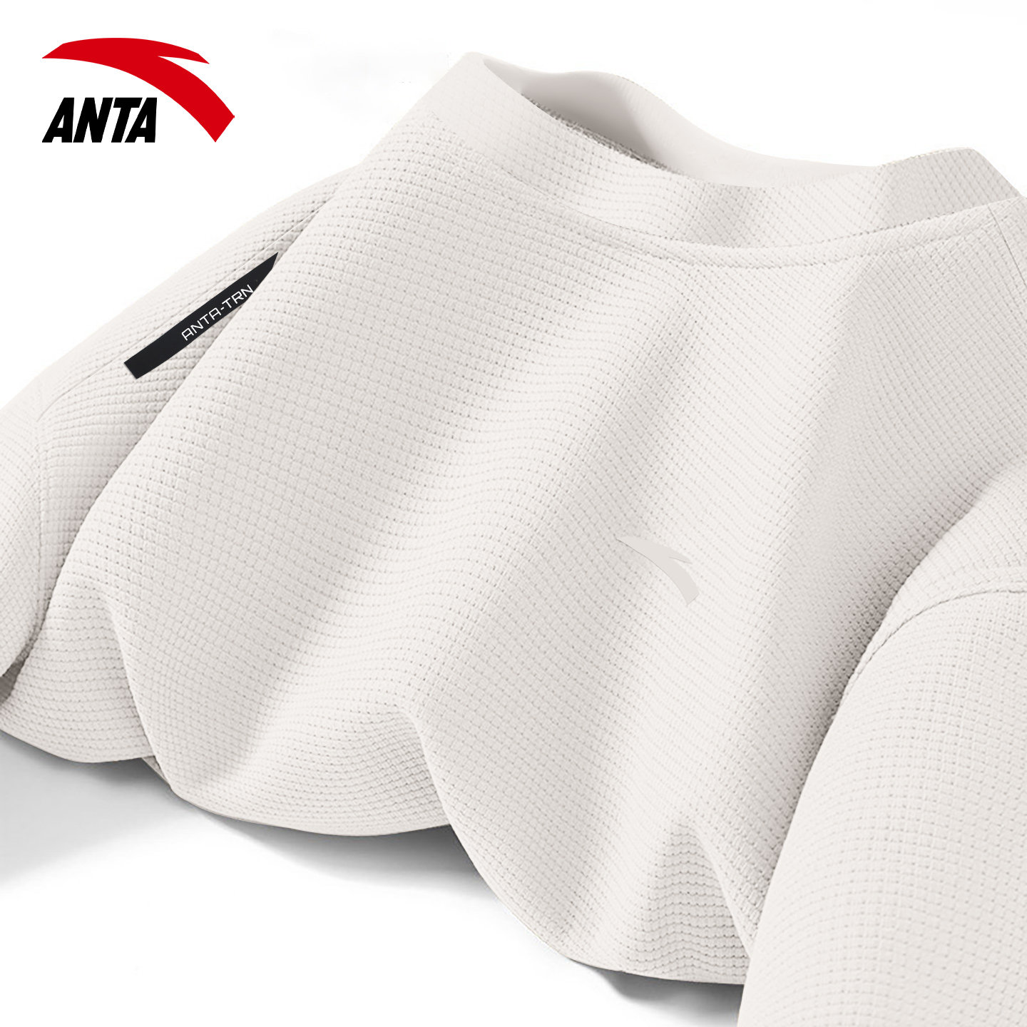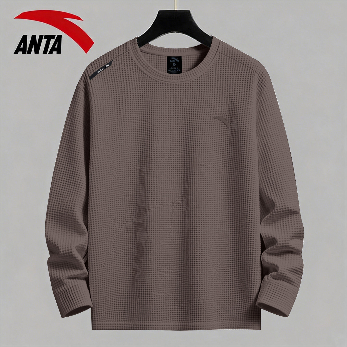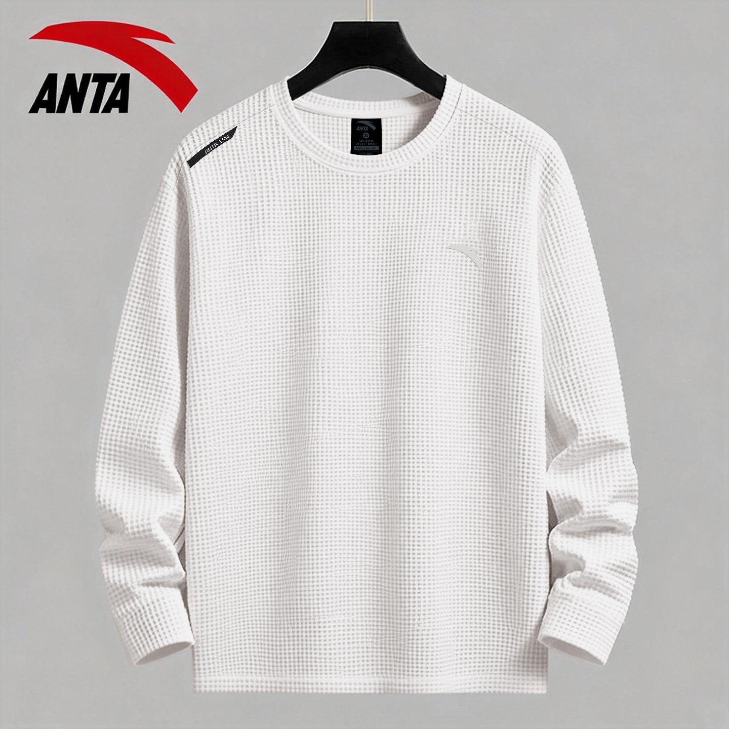 安踏长袖t恤男华夫格卫衣圆领宽松潮牌青少年男装春季薄款上衣服