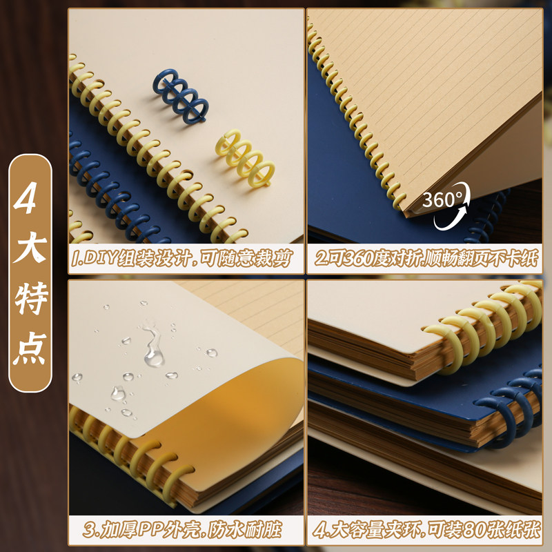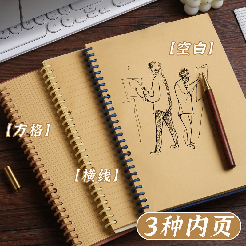 复古原木牛皮纸活页本A5高颜值可拆卸线圈本笔记本b5横线本空白本日记本DIY线圈笔记本可裁剪diy活页笔记本子
