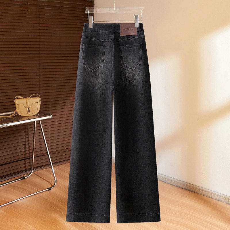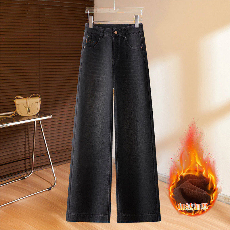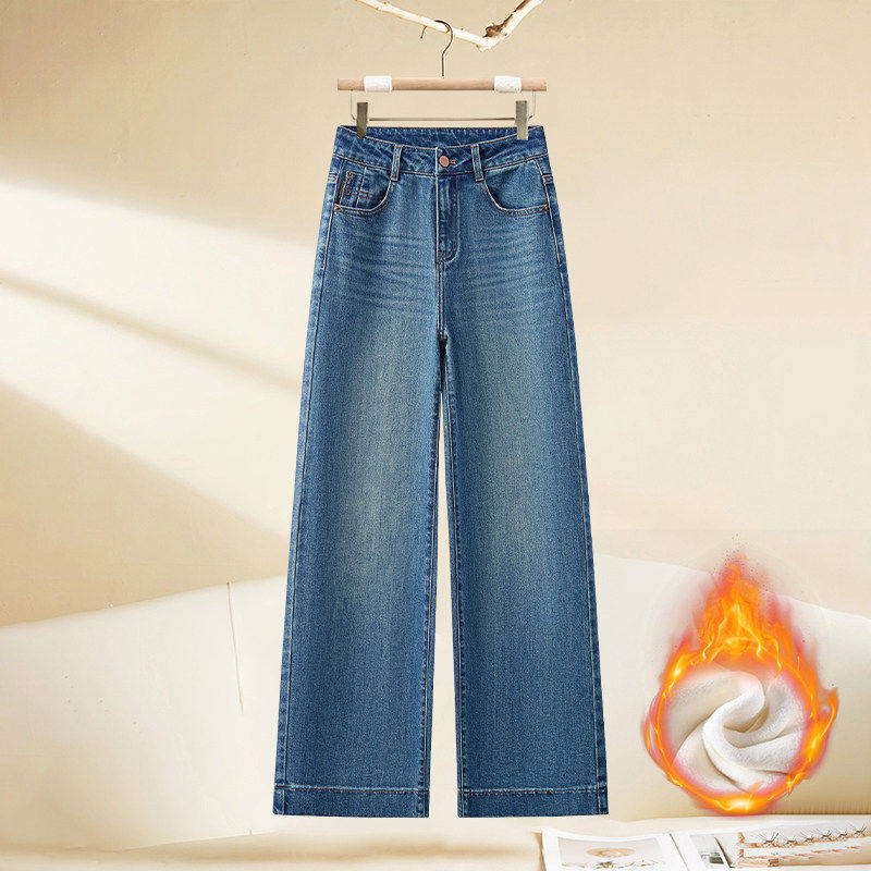蓝色牛仔宽裤女士2026年春秋冬季新款今年流行爆款加绒直筒裤子