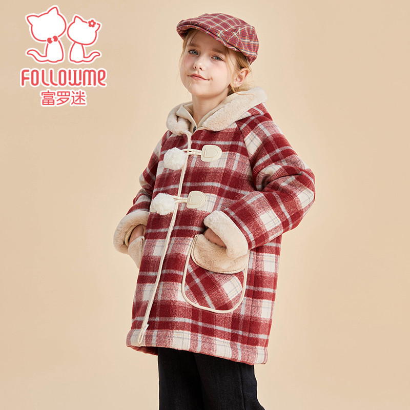 富罗迷女童大衣儿童冬装2025冬季新款好看洋气女孩中长款加厚外套