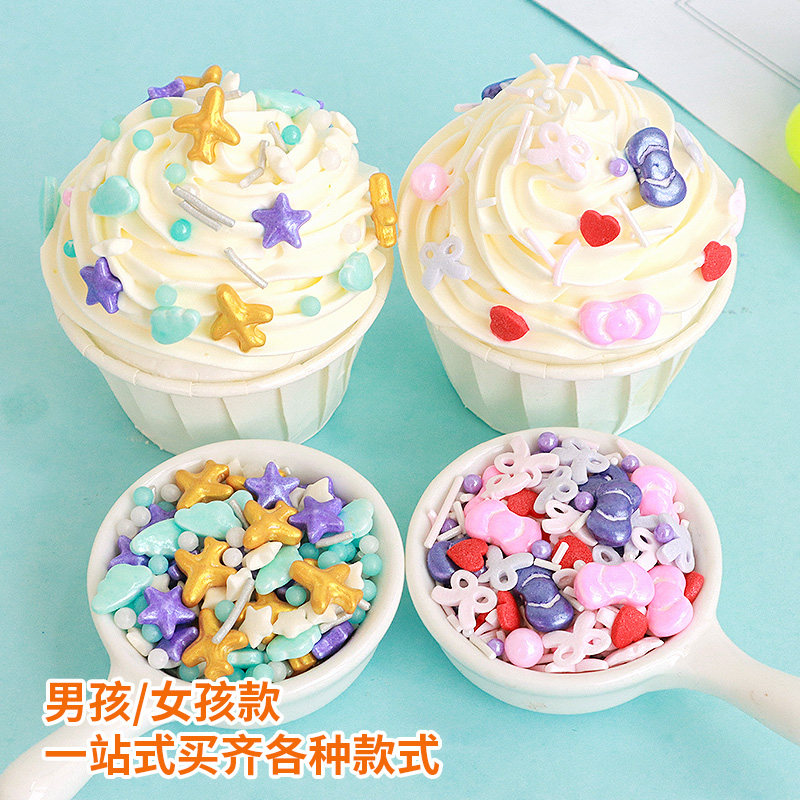 儿童节蛋糕装饰彩色糖珠爱心气球切片糖针冰淇淋生日纸杯甜品点缀