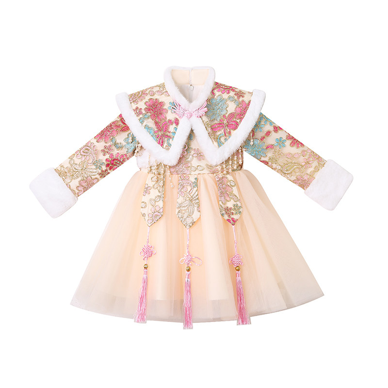 女童冬季连衣裙儿童过年喜庆衣服裙子拜年服女宝龙年新年汉服冬款