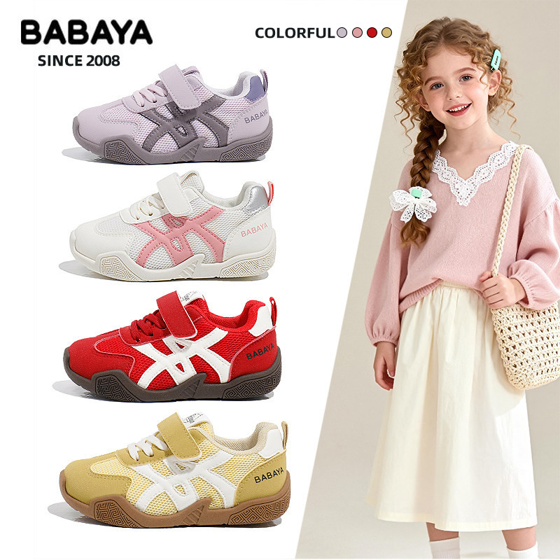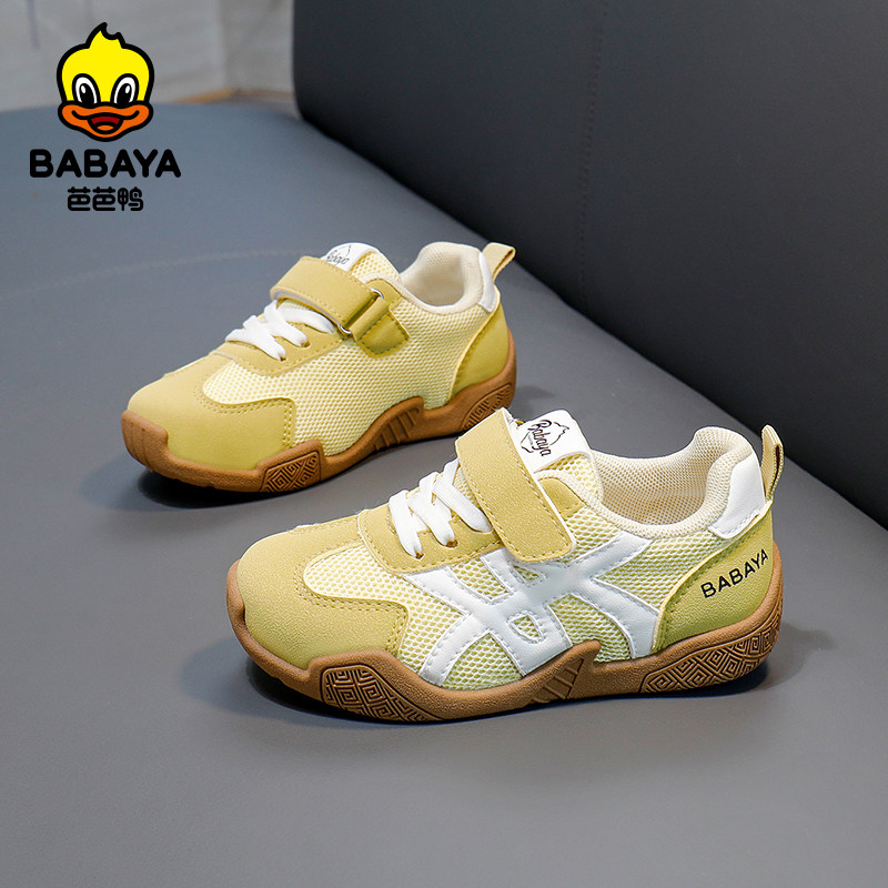 芭芭鸭2026春季新款童鞋男童鞋子休闲运动透气网面板鞋女童红色鞋
