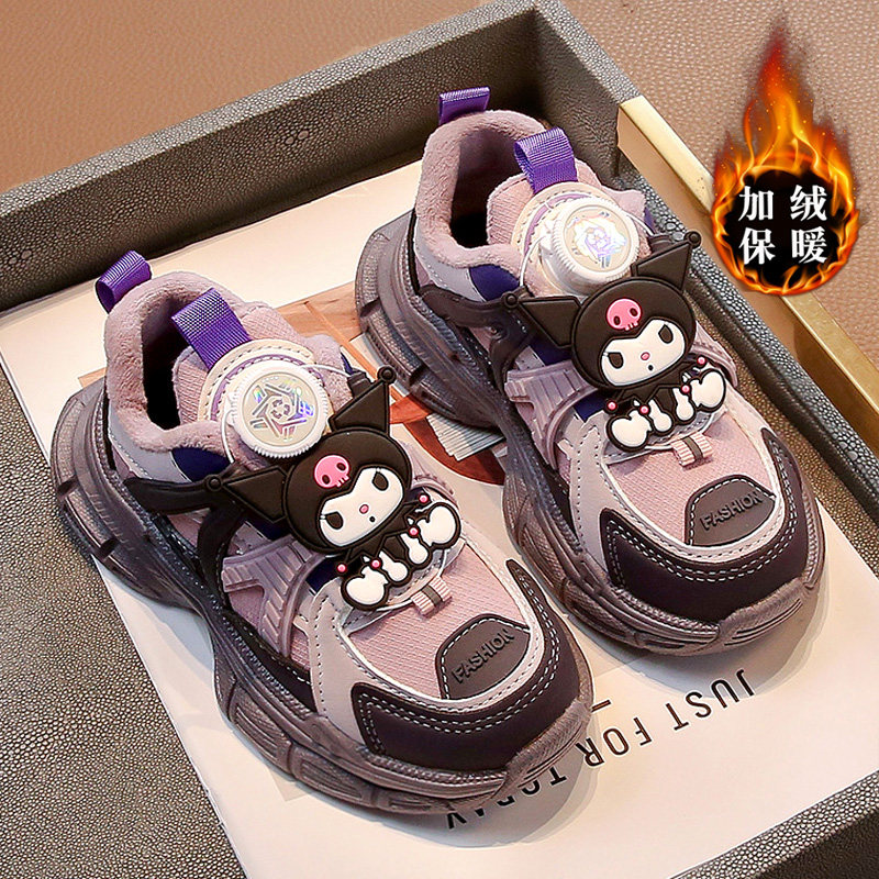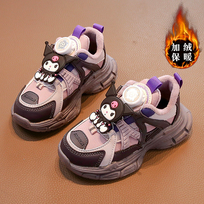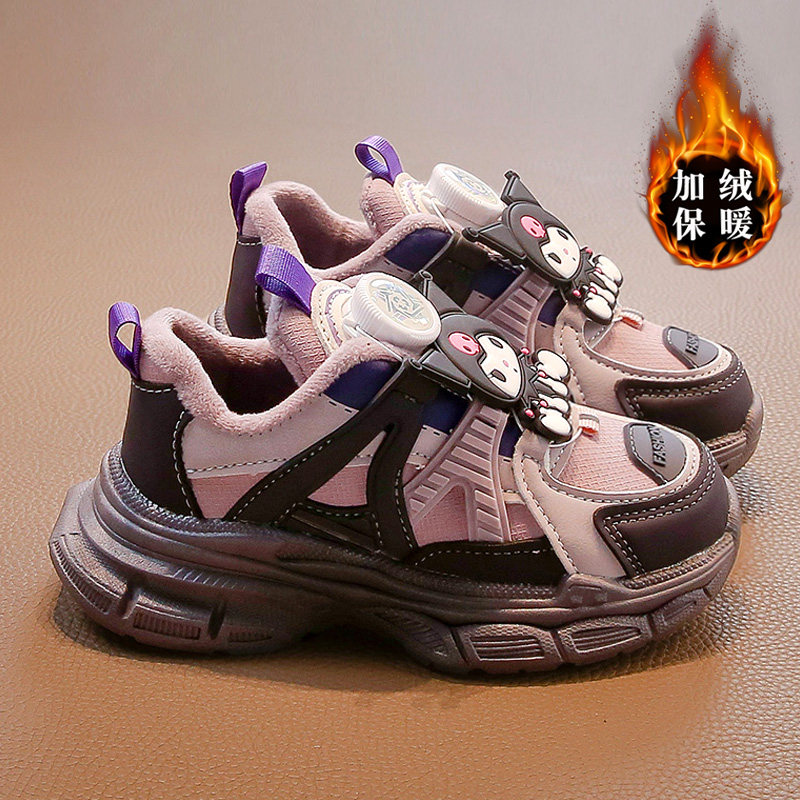 库洛米小黄鸭女童鞋子秋冬儿童运动冬鞋女孩加绒二棉鞋耐脏老爹鞋