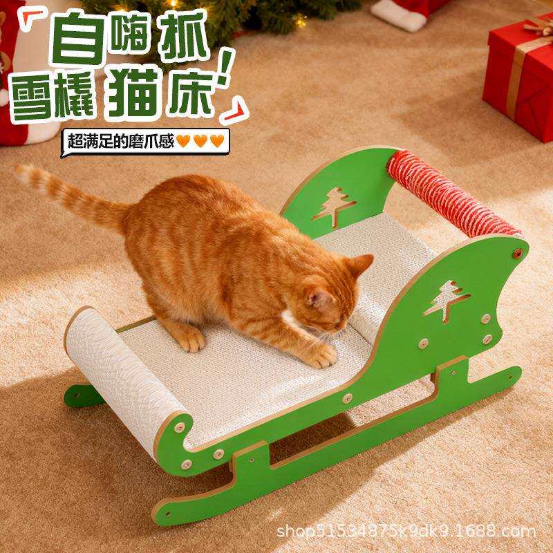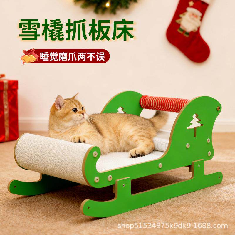圣诞雪橇猫抓板猫窝一体耐磨不掉屑四季通用瓦楞纸猫窝沙发躺椅