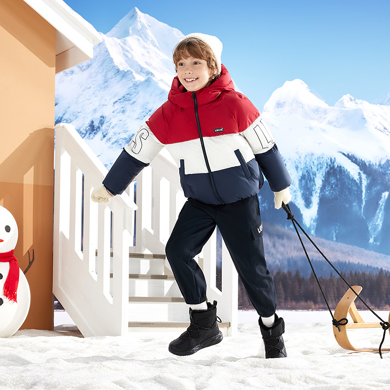 【新年红色】李维斯儿童棉服男童防水外套女童洋气保暖面包服棉袄